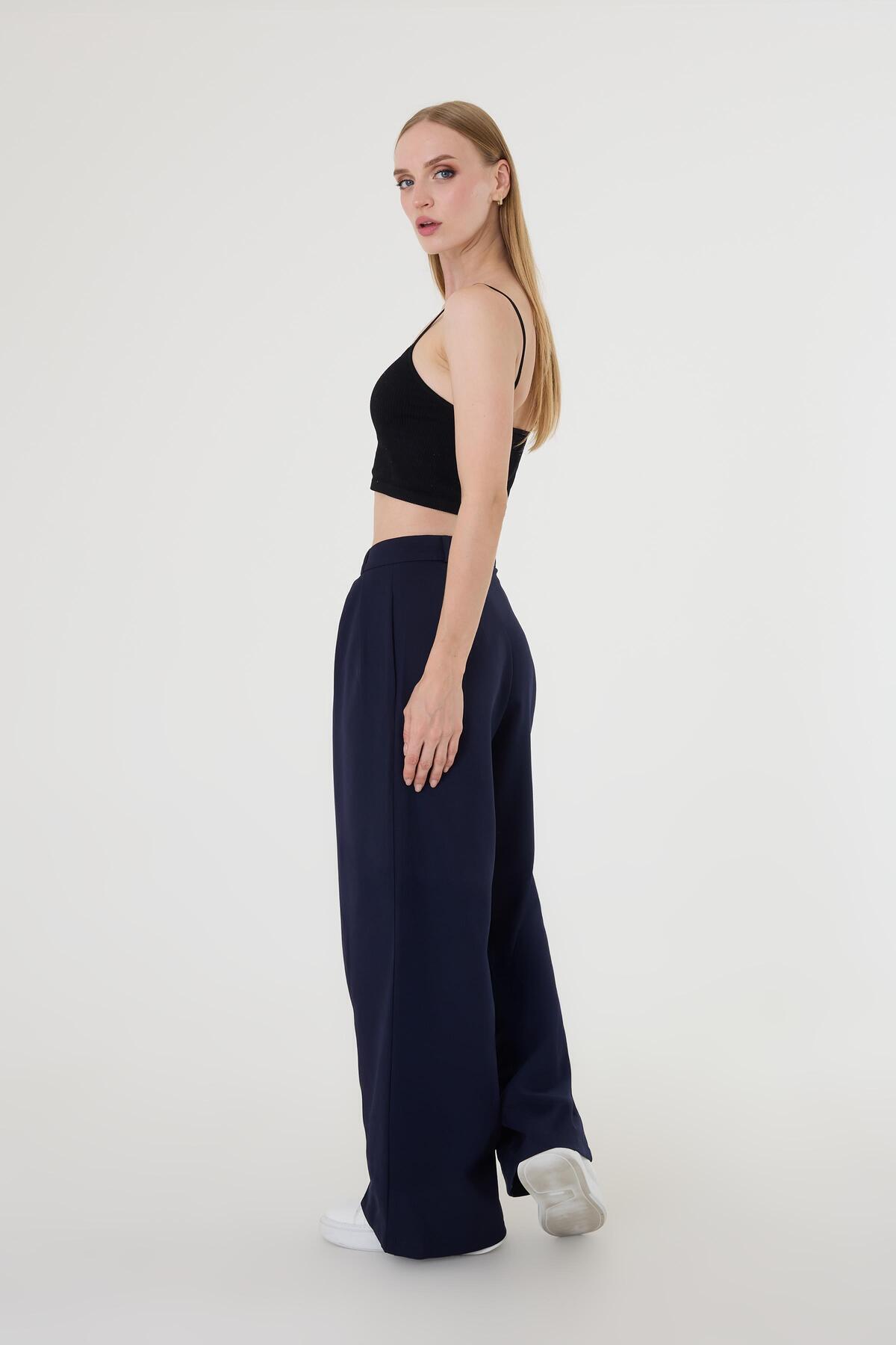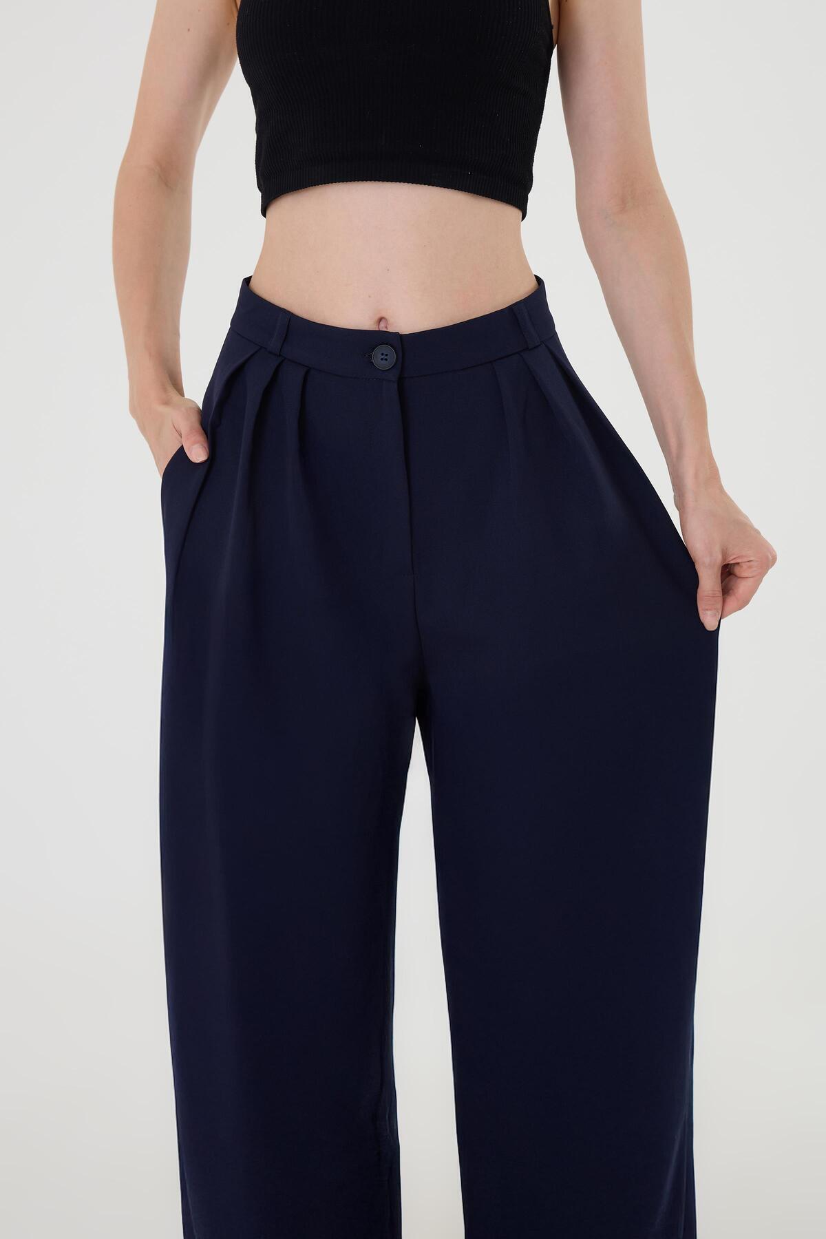 Kadın Lacivert Pile Detaylı Palazzo Pantolon Kadın Lacivert Pile Detaylı Palazzo Pantolon HZL6020 42