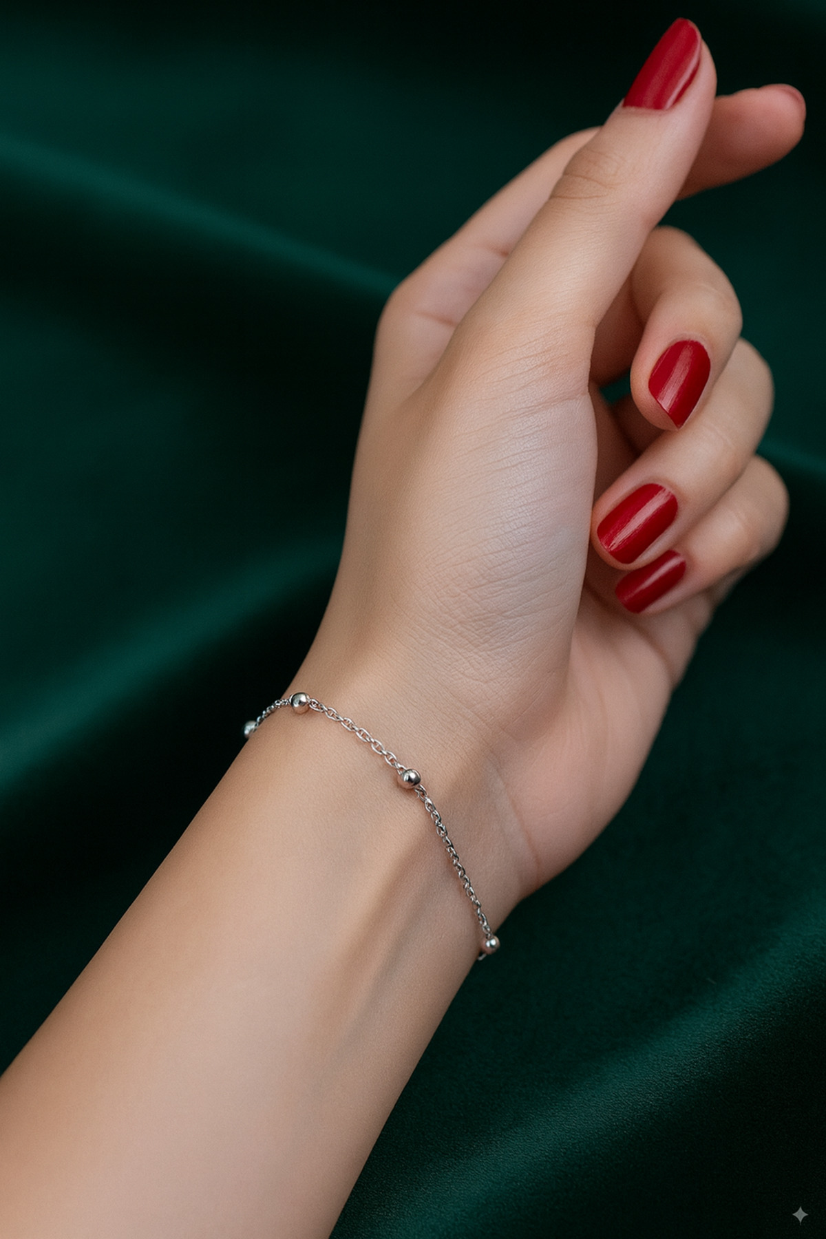 Gümüş Renk Kadın Silver Renk Top Zincir Bileklik Gümüş Renk Kadın Silver Renk Top Zincir Bileklik GRTB011 تک سایز