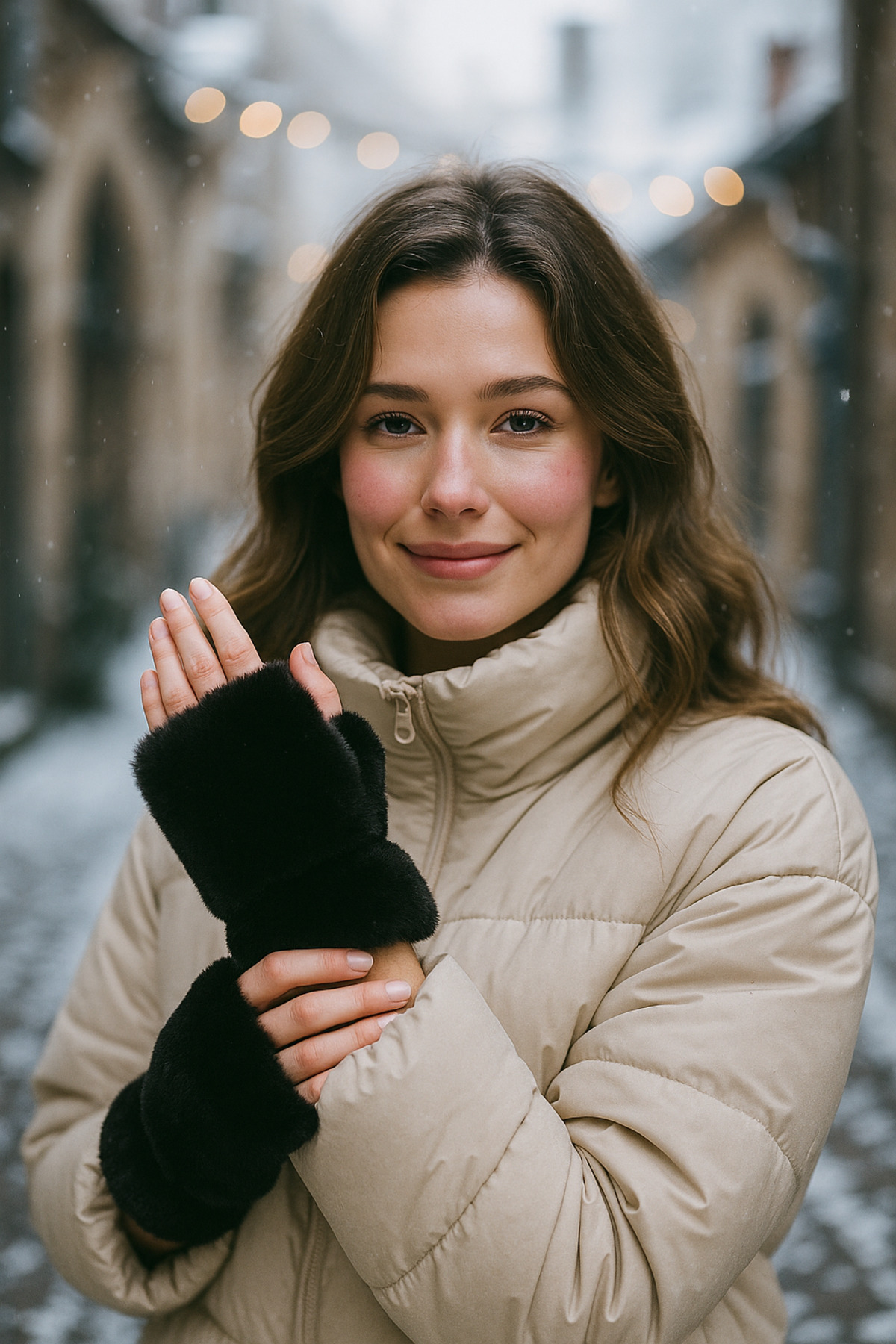 Kadın Siyah Kesik Peluş Eldiven ELD33 Kadın Siyah Kesik Peluş Eldiven ELD33 ELD05 تک سایز