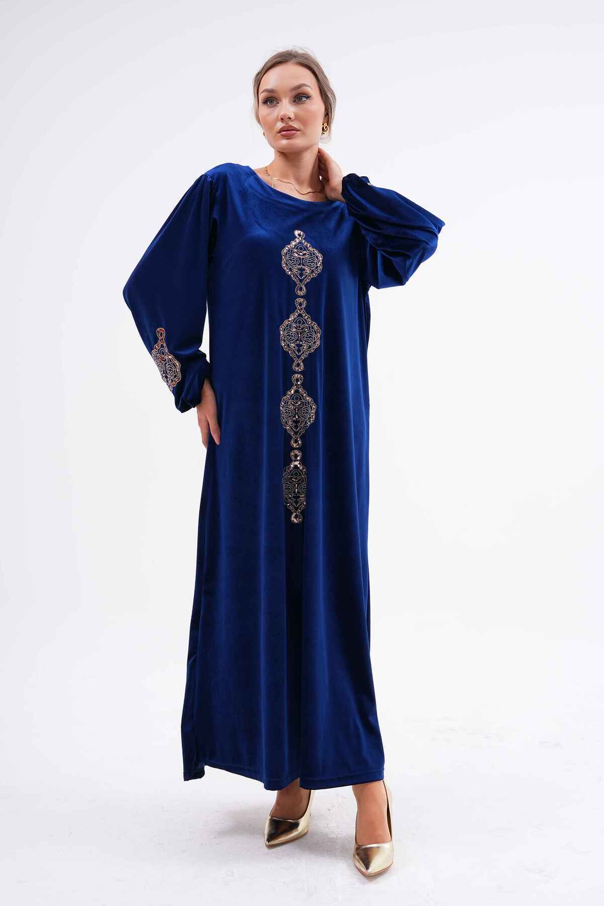 Kadın Nakışlı Büyük Beden Tesettür Kadife Elbise Kadın Nakışlı Büyük Beden Tesettür Kadife Elbise 1014 Standart