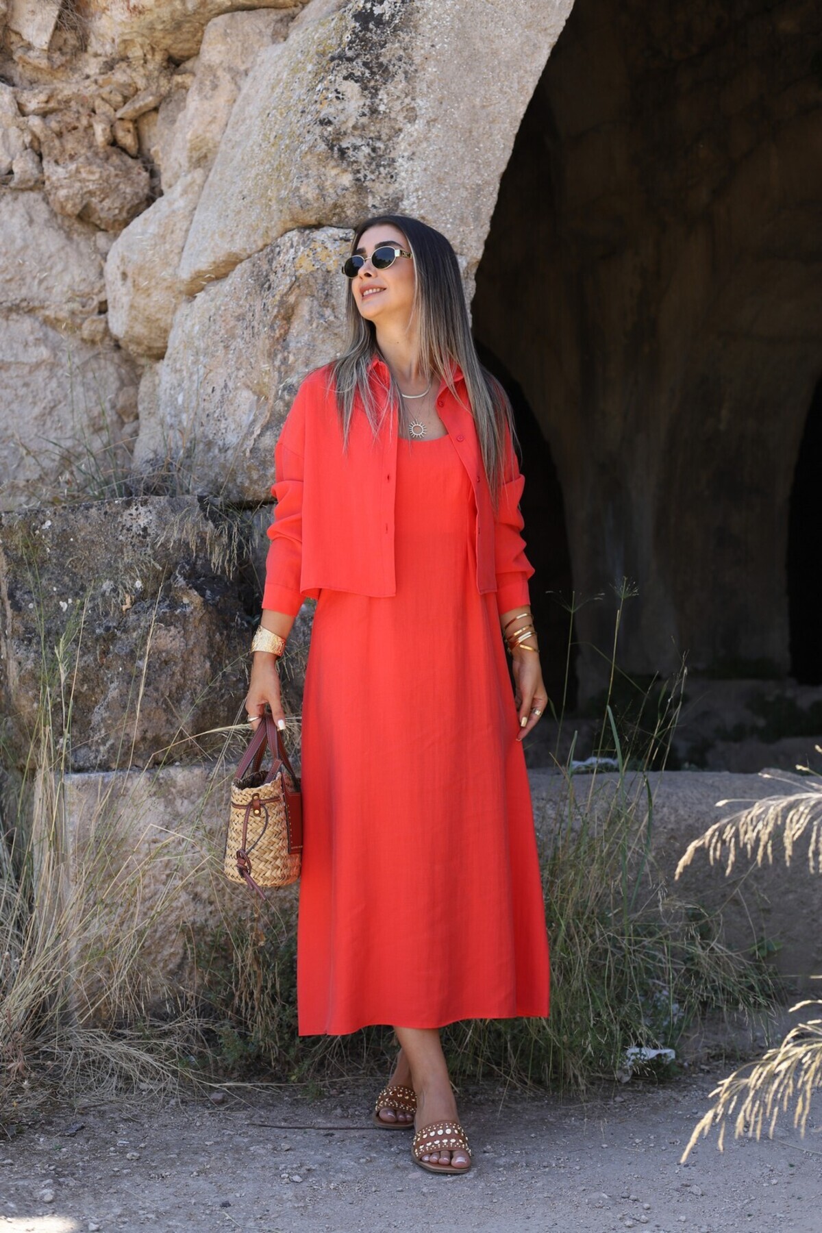 Kırmızı Polo Yaka Bel Detay Elbise Kırmızı Polo Yaka Bel Detay Elbise P210S6027 XL