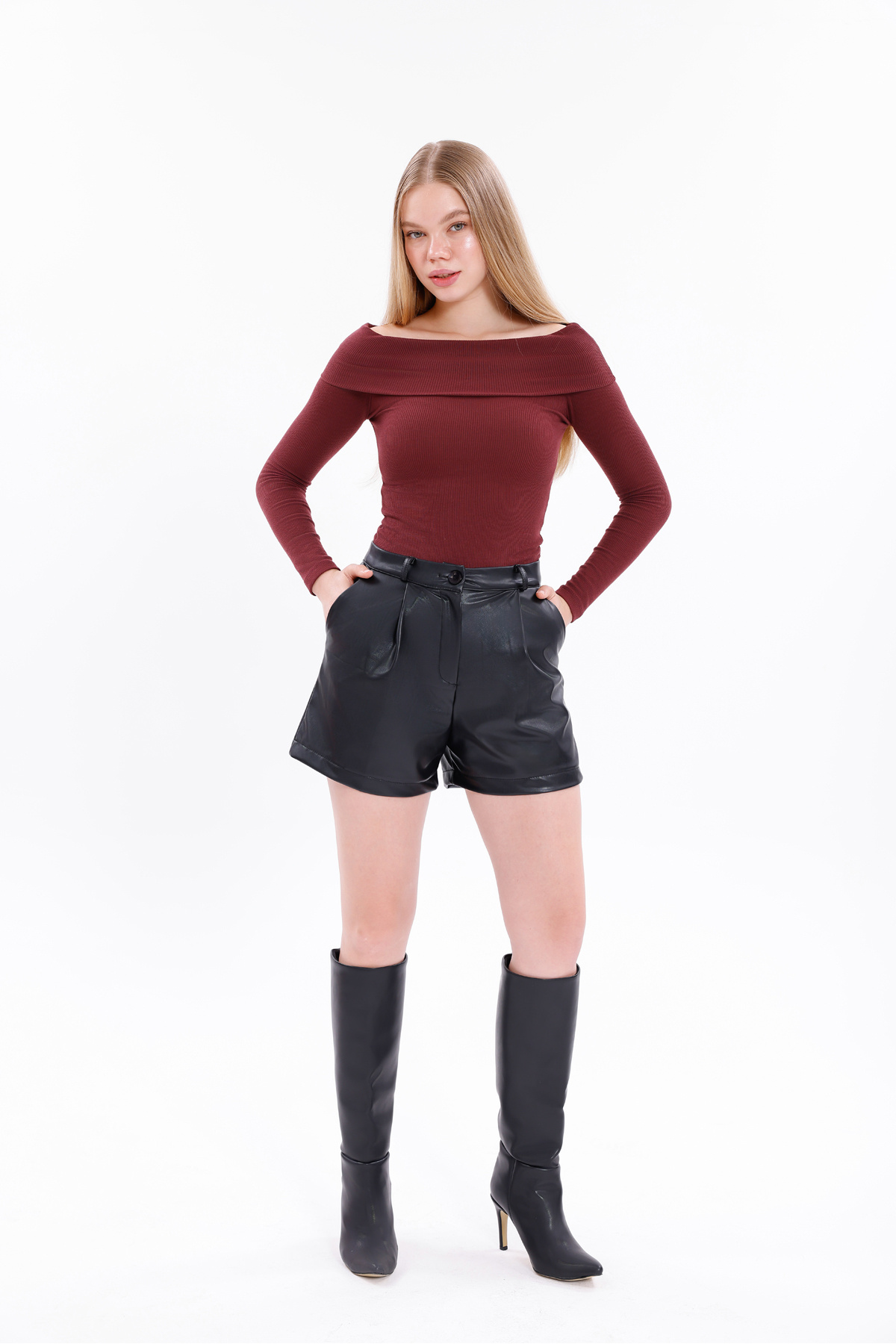 Kadın Suni Deri Şort Yüksek Bel Rahat Kalıp - DERİ ŞORT Kadın Suni Deri Şort Yüksek Bel Rahat Kalıp - DERİ ŞORT ŞRT2025 XL