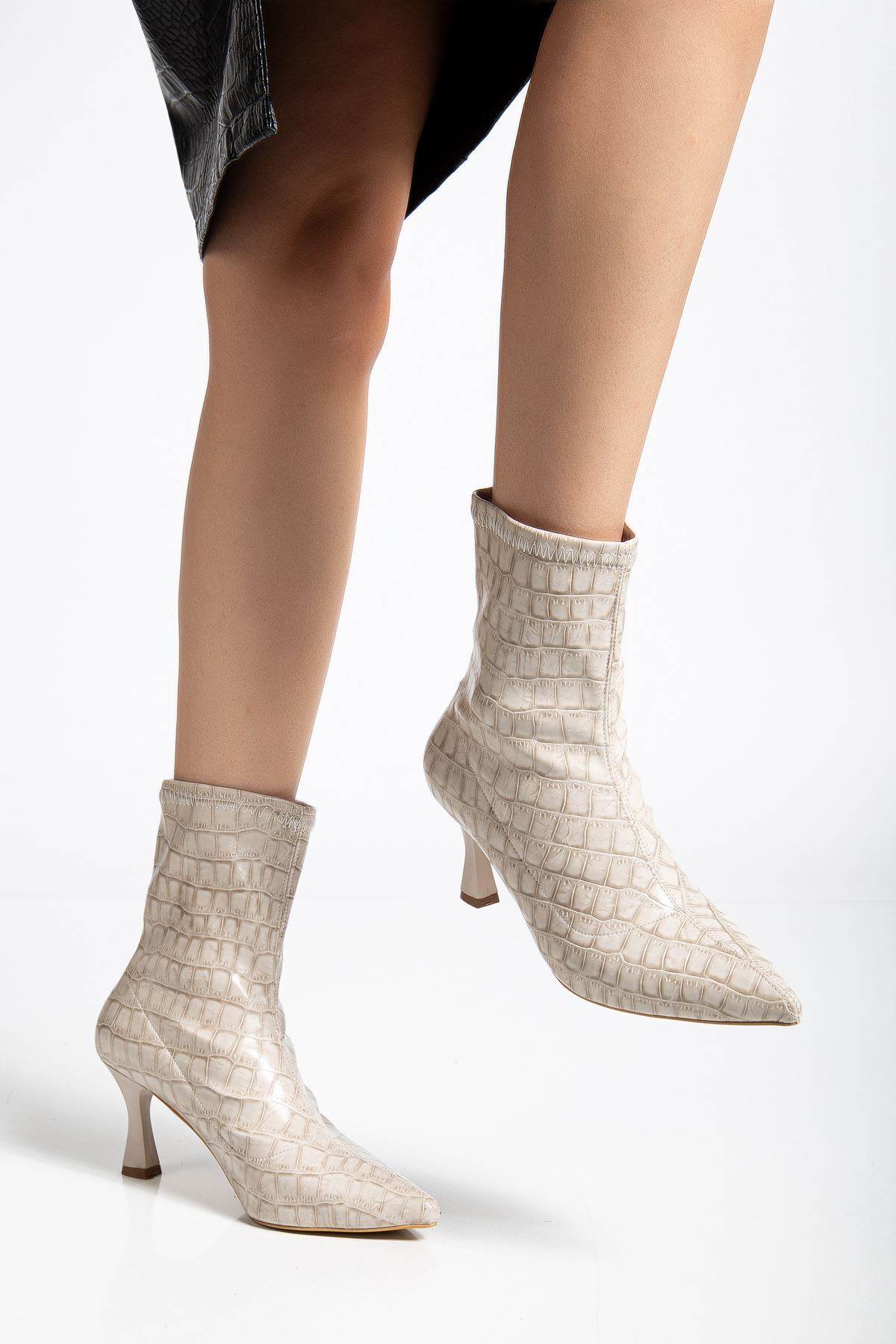 Kadın Bej Crocodile Bilekli Orta Boy Topuklu Bot Kadın Bej Crocodile Bilekli Orta Boy Topuklu Bot HYL560223 42