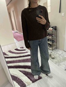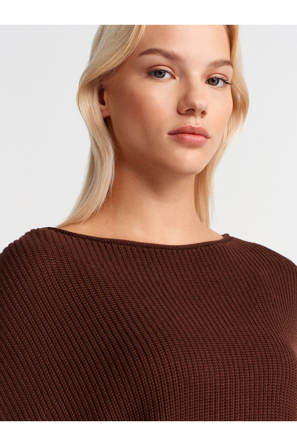 10804 Kayık Yaka Dökümlü Triko Kazak-Kahve 10804 Kayık Yaka Dökümlü Triko Kazak-Kahve 101A10804 Standart