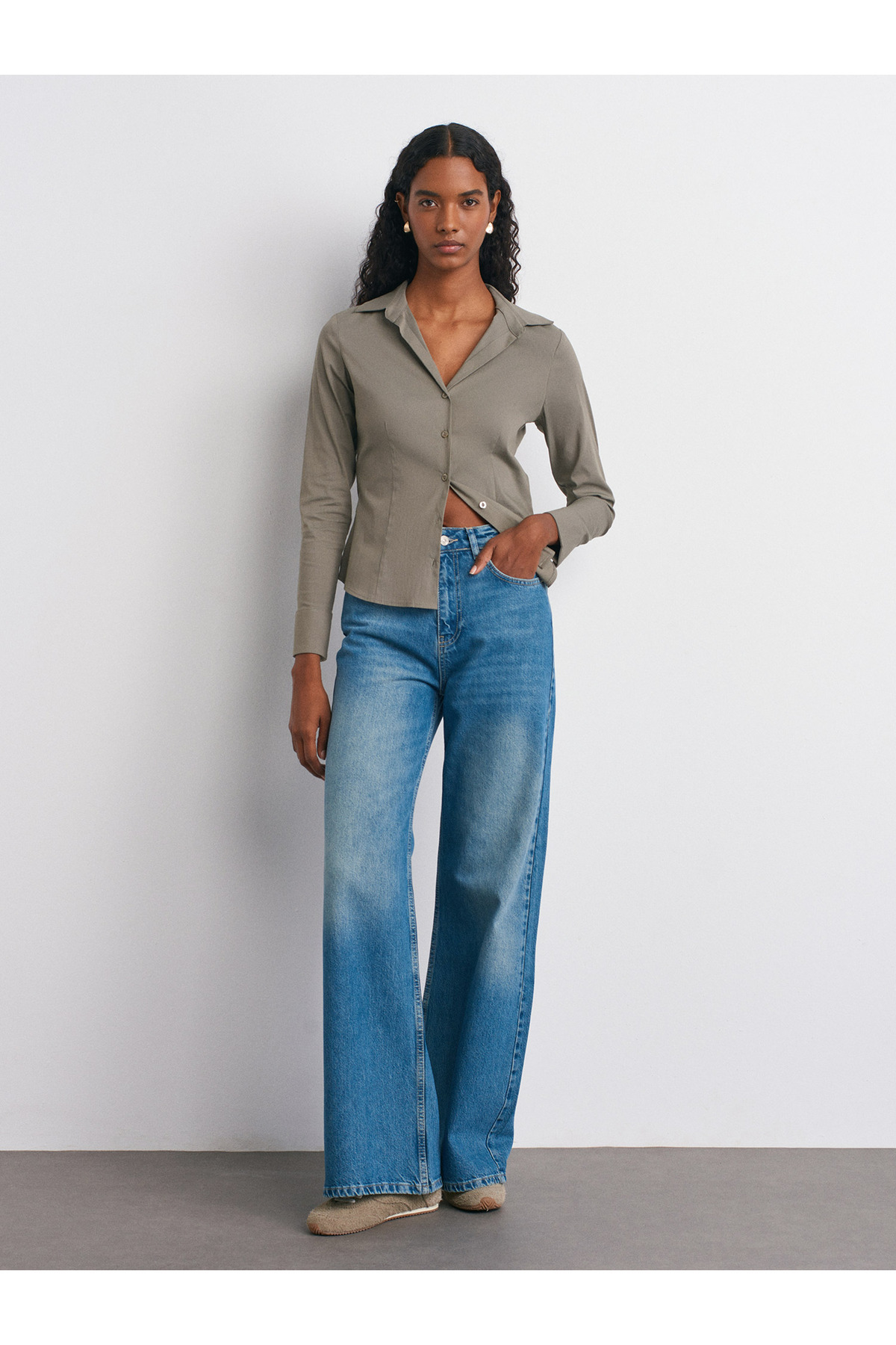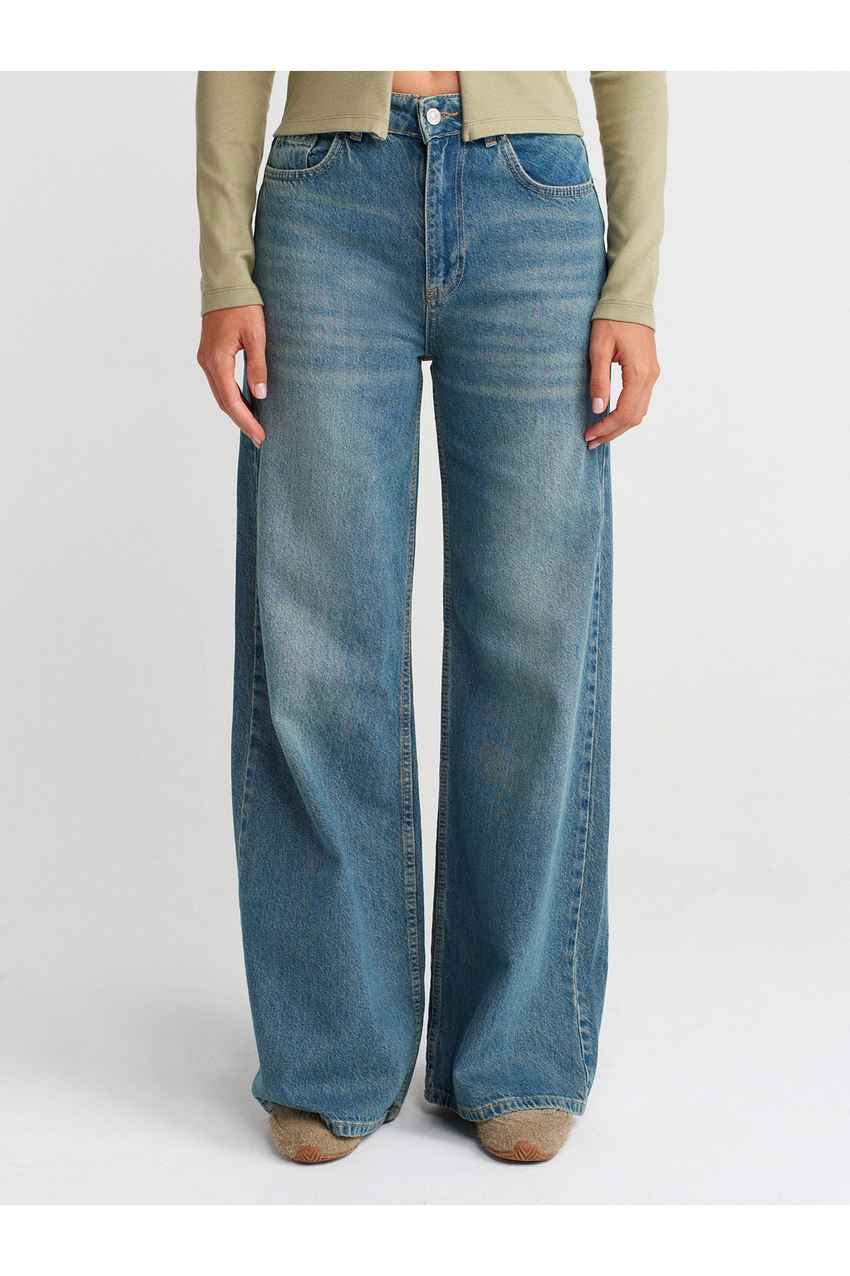 72038 Yeşil Tintli Geniş Denim Pantolon-Tint 72038 Yeşil Tintli Geniş Denim Pantolon-Tint 101A72038 40
