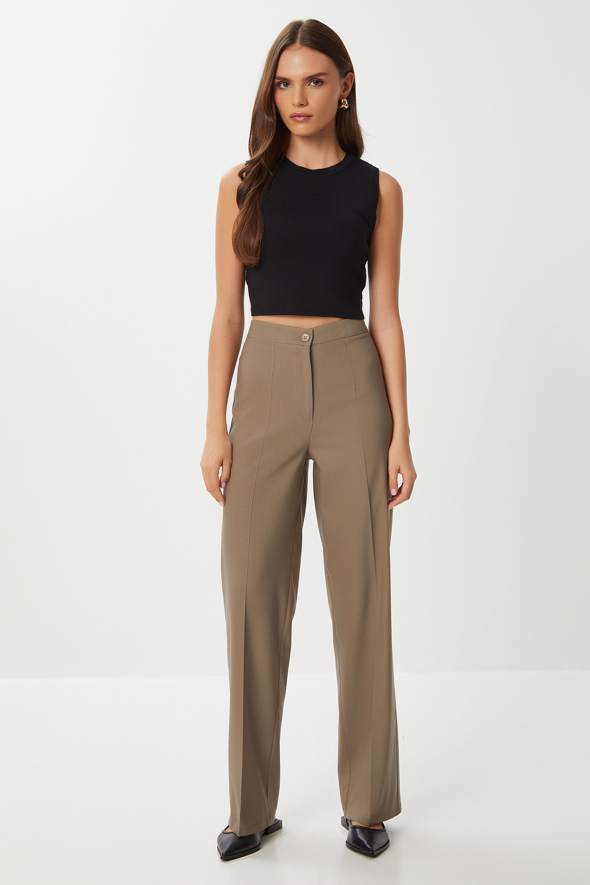 Dikişli Straight Poliviskon Pantolon LGP0023 KAHVERENGİ Dikişli Straight Poliviskon Pantolon LGP0023 KAHVERENGİ 42