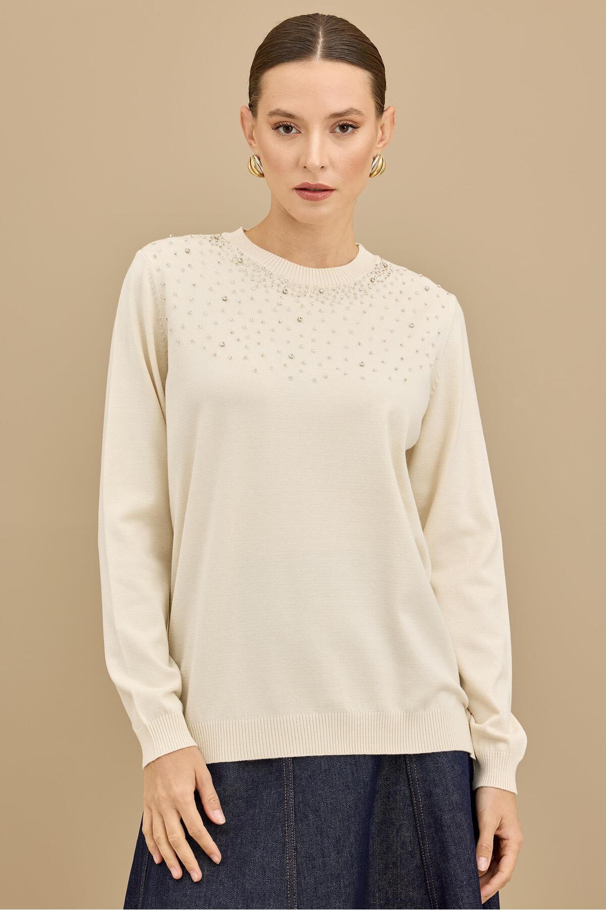 Boncuk İşlemeli Bluz VANİLYA Boncuk İşlemeli Bluz VANİLYA BLZ.21725.1 3
