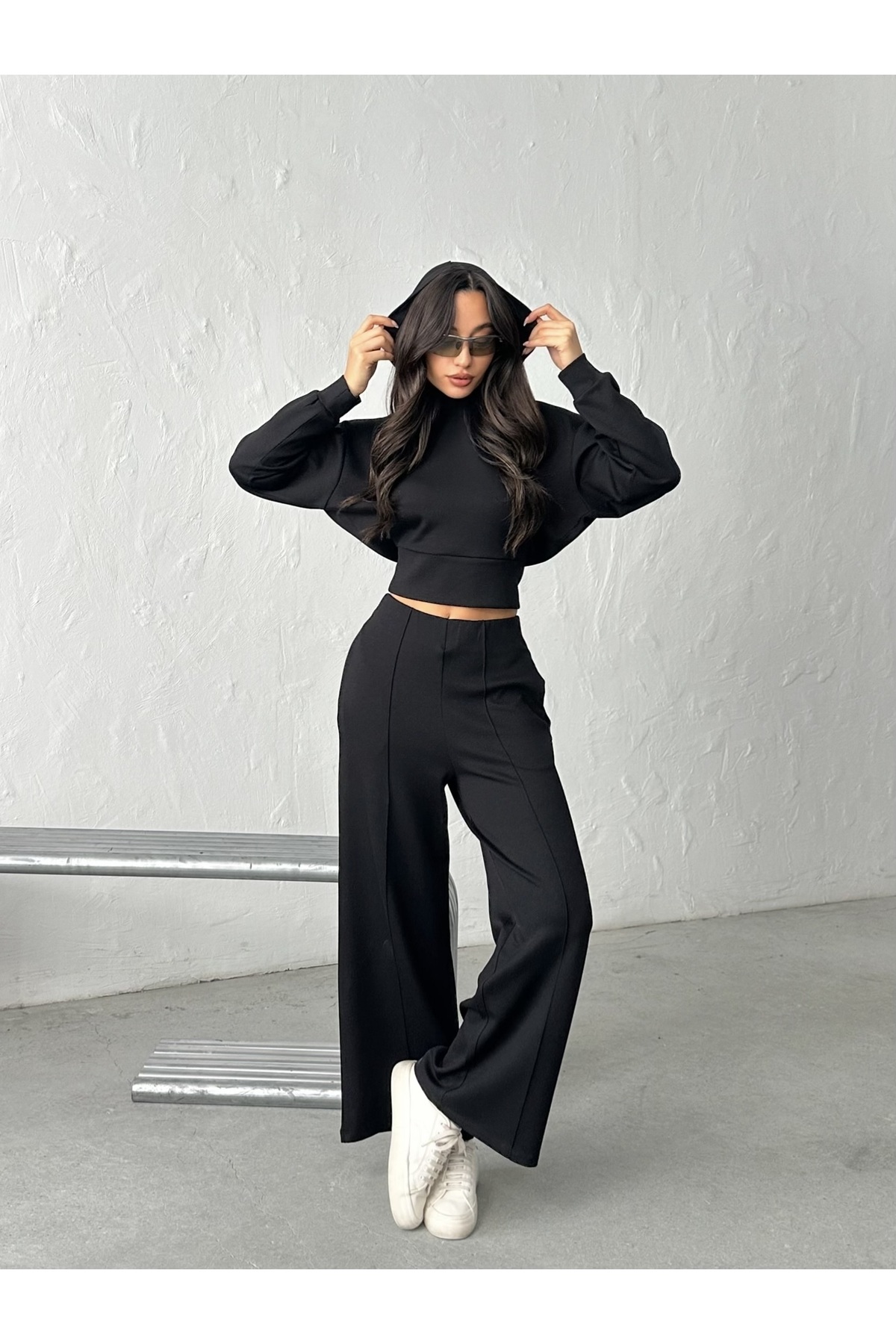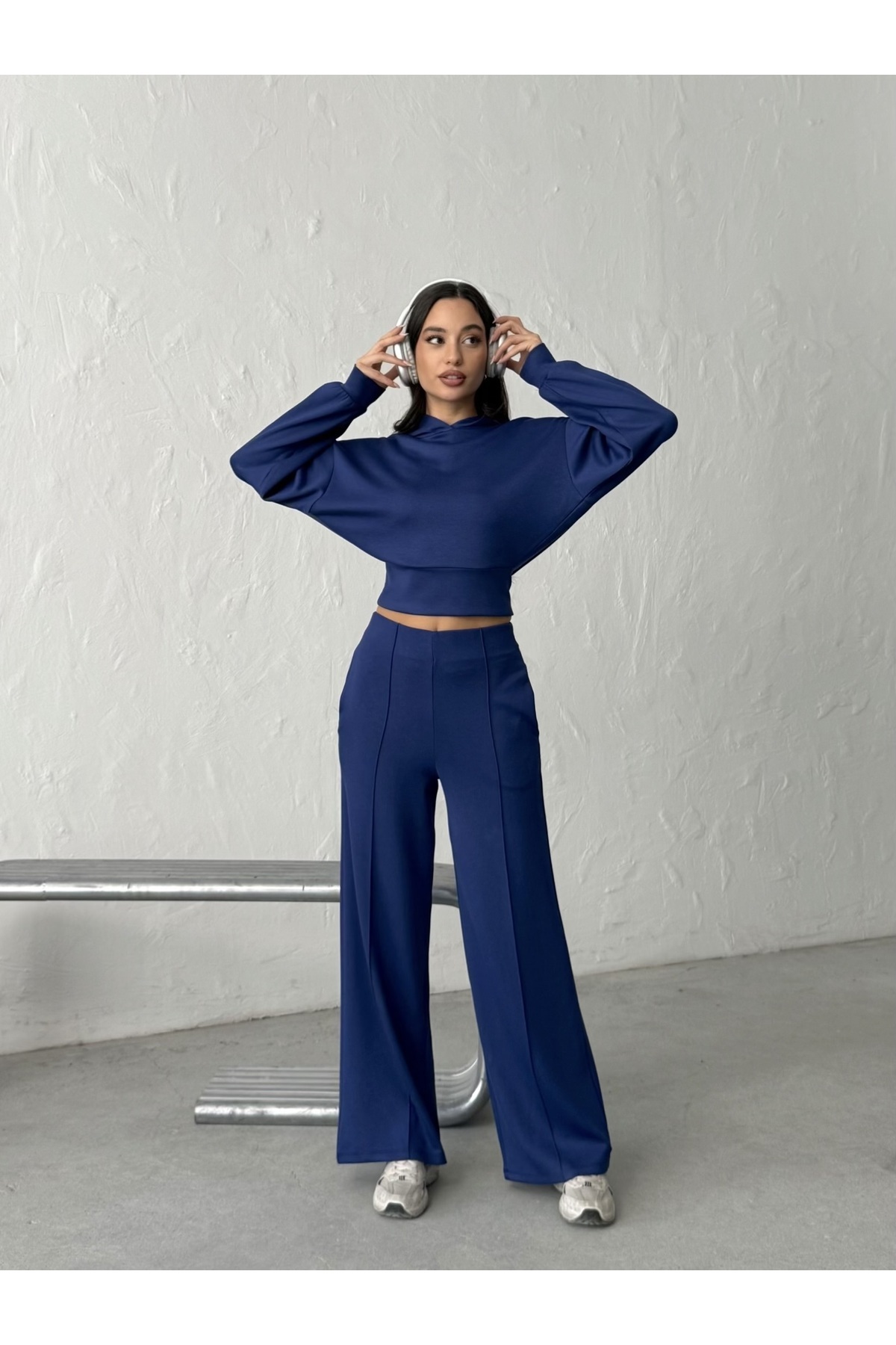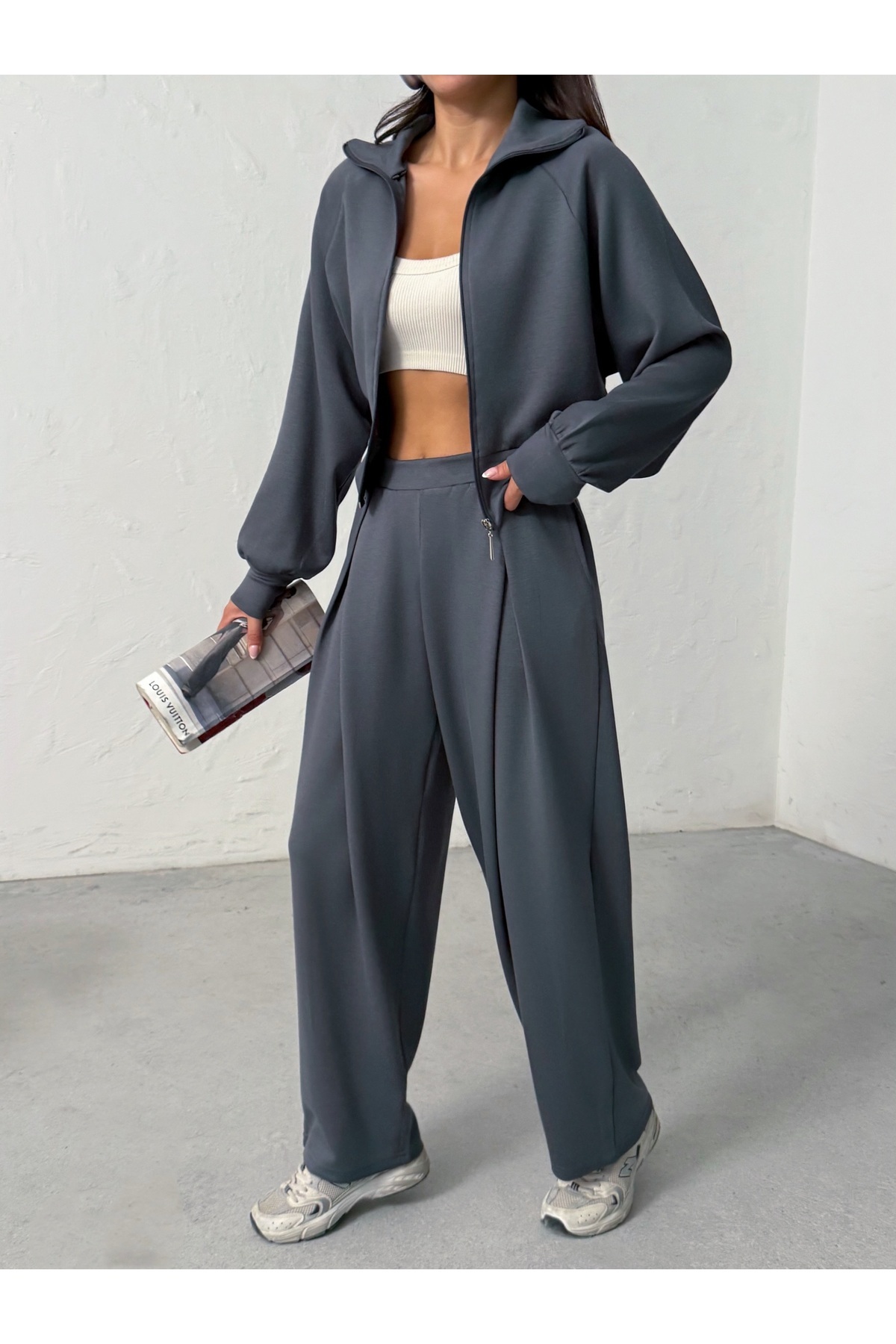 Kadın Gri Yumuşak Modal Dokulu Dik Yaka Ceket Pileli Geniş Paça Pantolon Alt Üst Spor Takım Kadın Gri Yumuşak Modal Dokulu Dik Yaka Ceket Pileli Geniş Paça Pantolon Alt Üst Spor Takım BJN649 XL