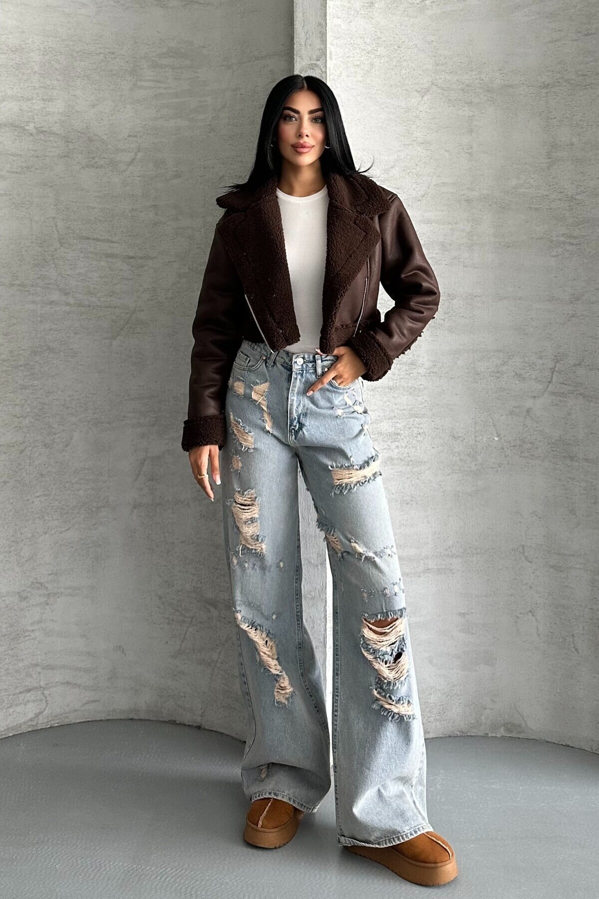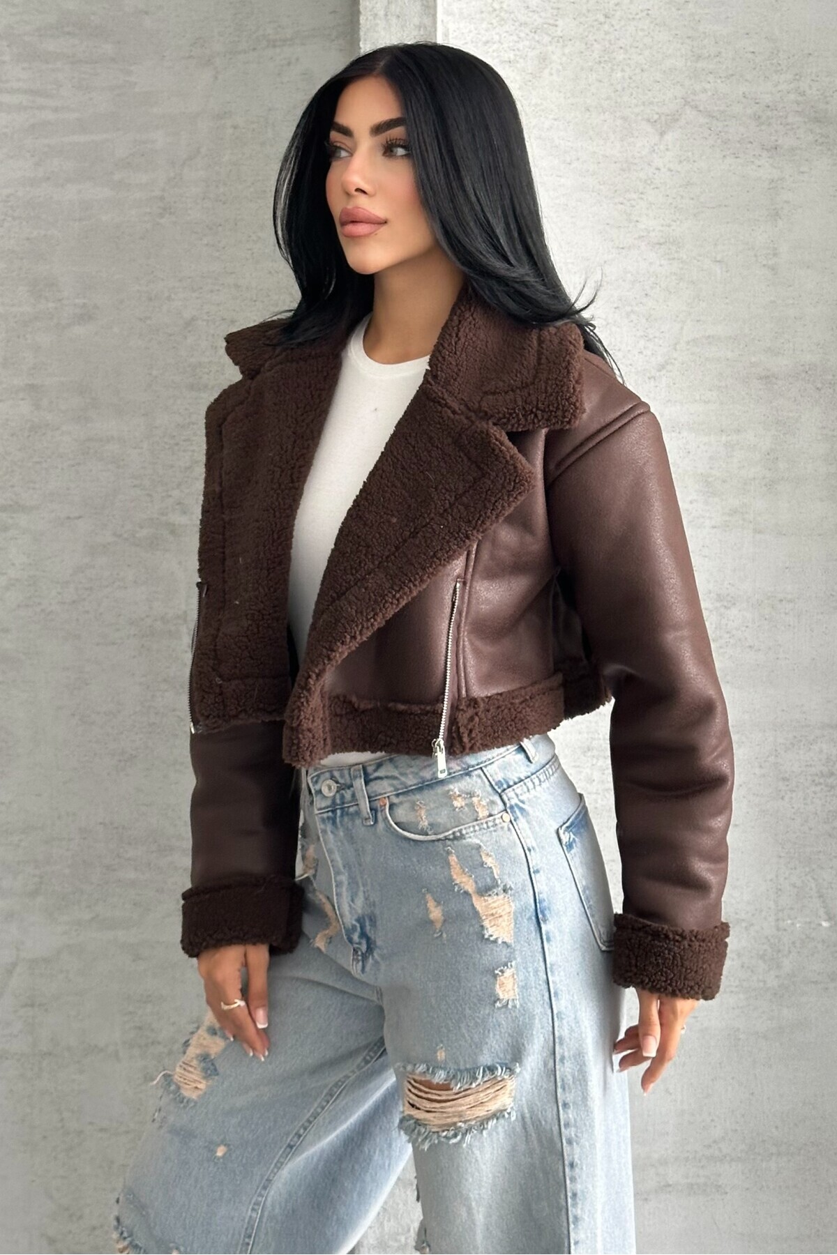 Kadın İçi Kürklü Suni Deri Mont - Crop Biker Deri Ceket Kadın İçi Kürklü Suni Deri Mont - Crop Biker Deri Ceket ma-cropdrmntln-056 L