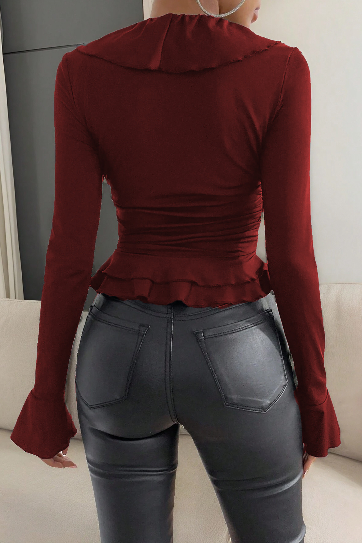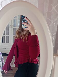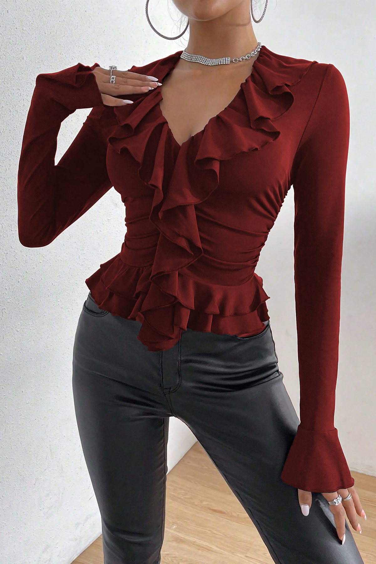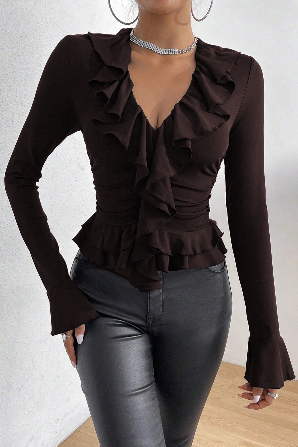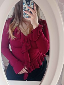 Uzun Kollu V Yaka Fırfırlı Bluz Uzun Kollu V Yaka Fırfırlı Bluz 9082 XL
