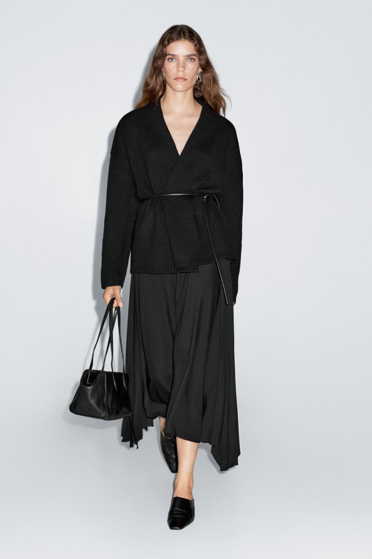 Kemerli uzun triko hırka Kemerli uzun triko hırka 00110779205637846 L