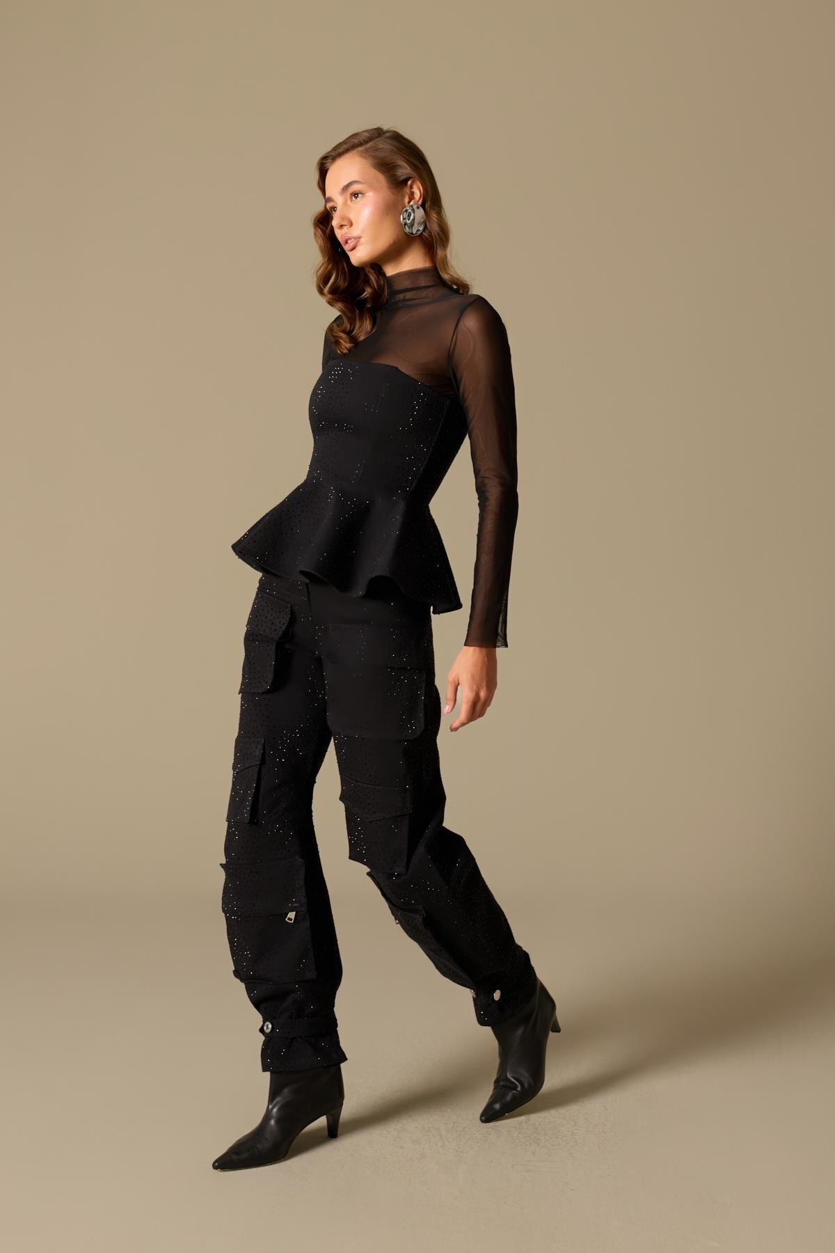 Femme Vibe Çok Cepli Diamond Kargo Pantolon Black Femme Vibe Çok Cepli Diamond Kargo Pantolon Black 26W2104 XL
