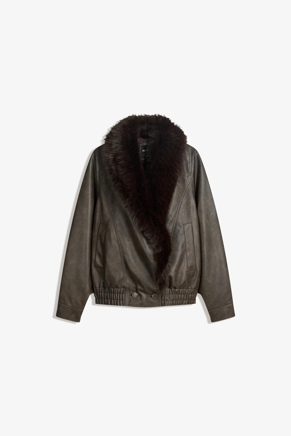 Suni deri kürk yakalı ceket Suni deri kürk yakalı ceket 06626109 L
