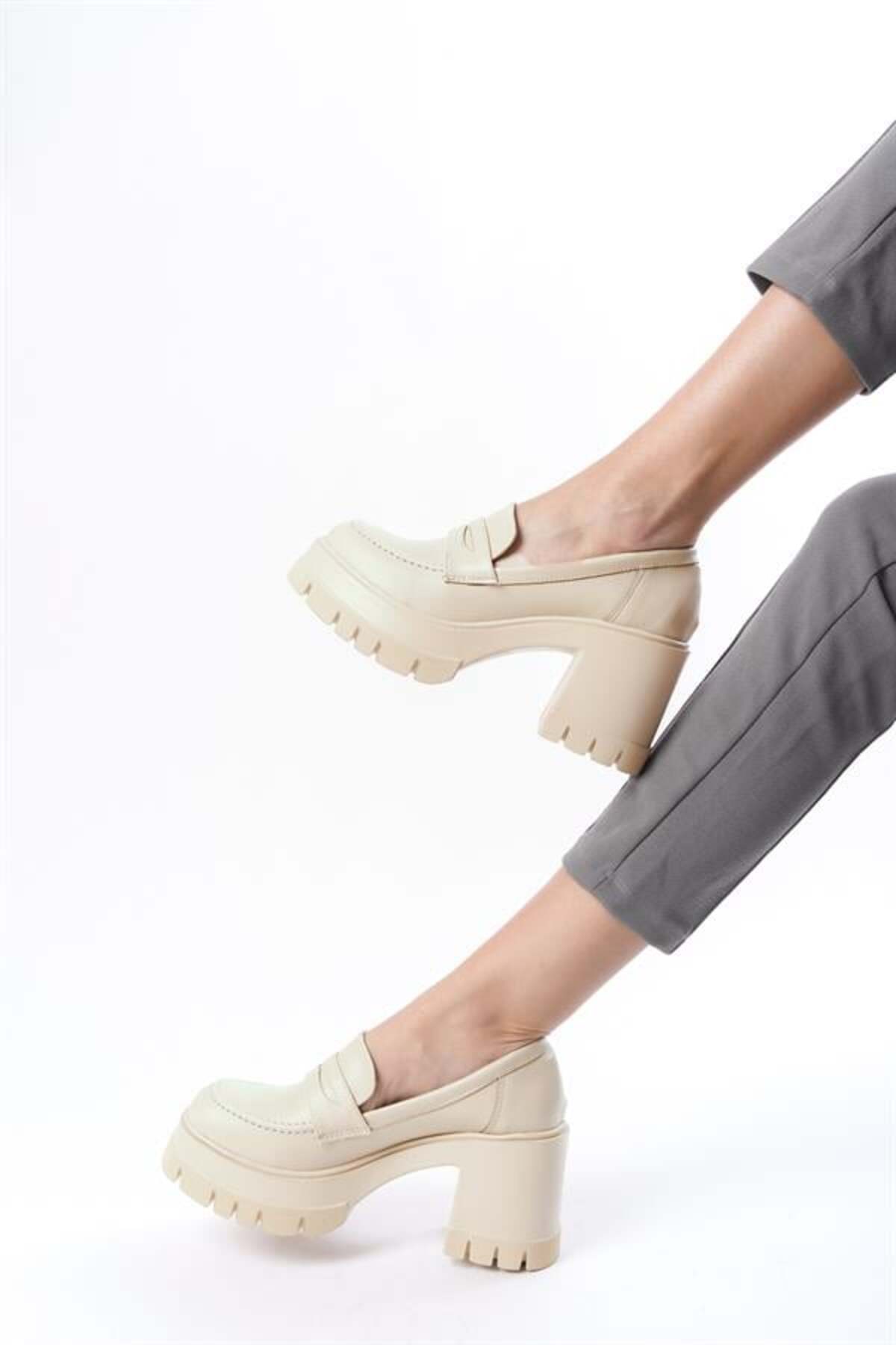 Kadın Krem Cilt 8 cm Topuklu Platformlu Ayakkabı Kadın Krem Cilt 8 cm Topuklu Platformlu Ayakkabı femi00001 40