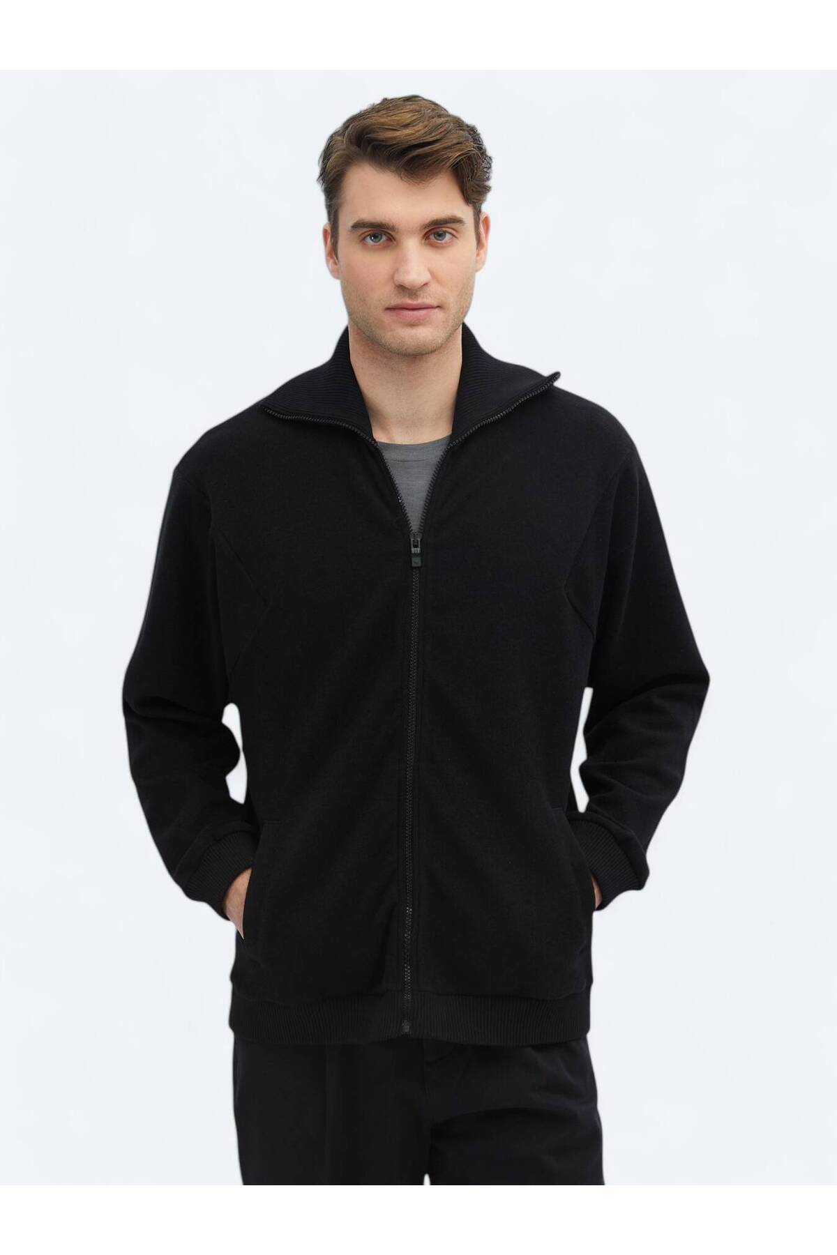 Lacivert Dik Yaka Çizgili Sweatshırt Lacivert Dik Yaka Çizgili Sweatshırt 51270 3XL