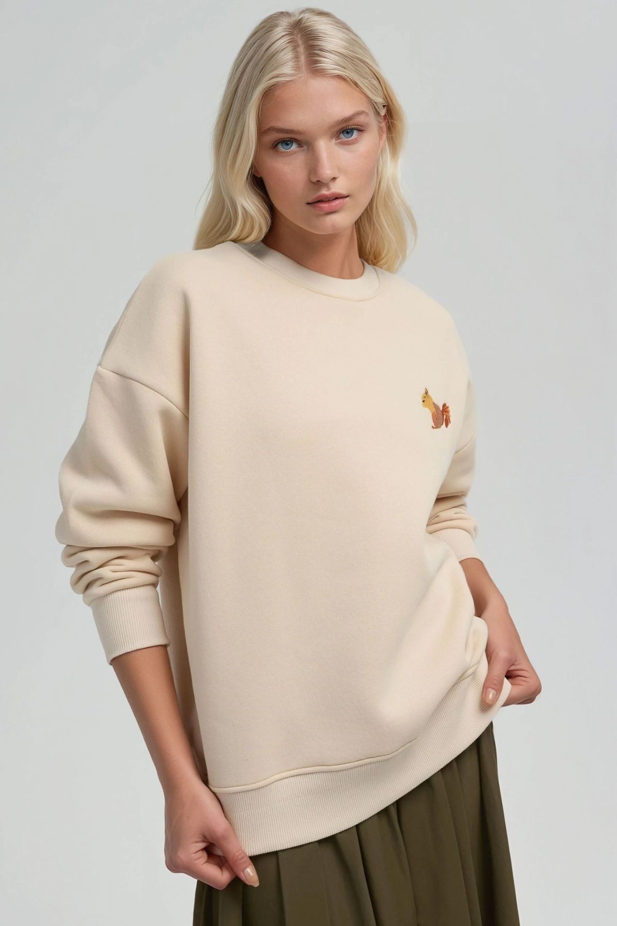 Rahat Hayvan Nakışlı Şardonlu Bisiklet Yaka Hoodie Rahat Hayvan Nakışlı Şardonlu Bisiklet Yaka Hoodie M36YNA65 XL
