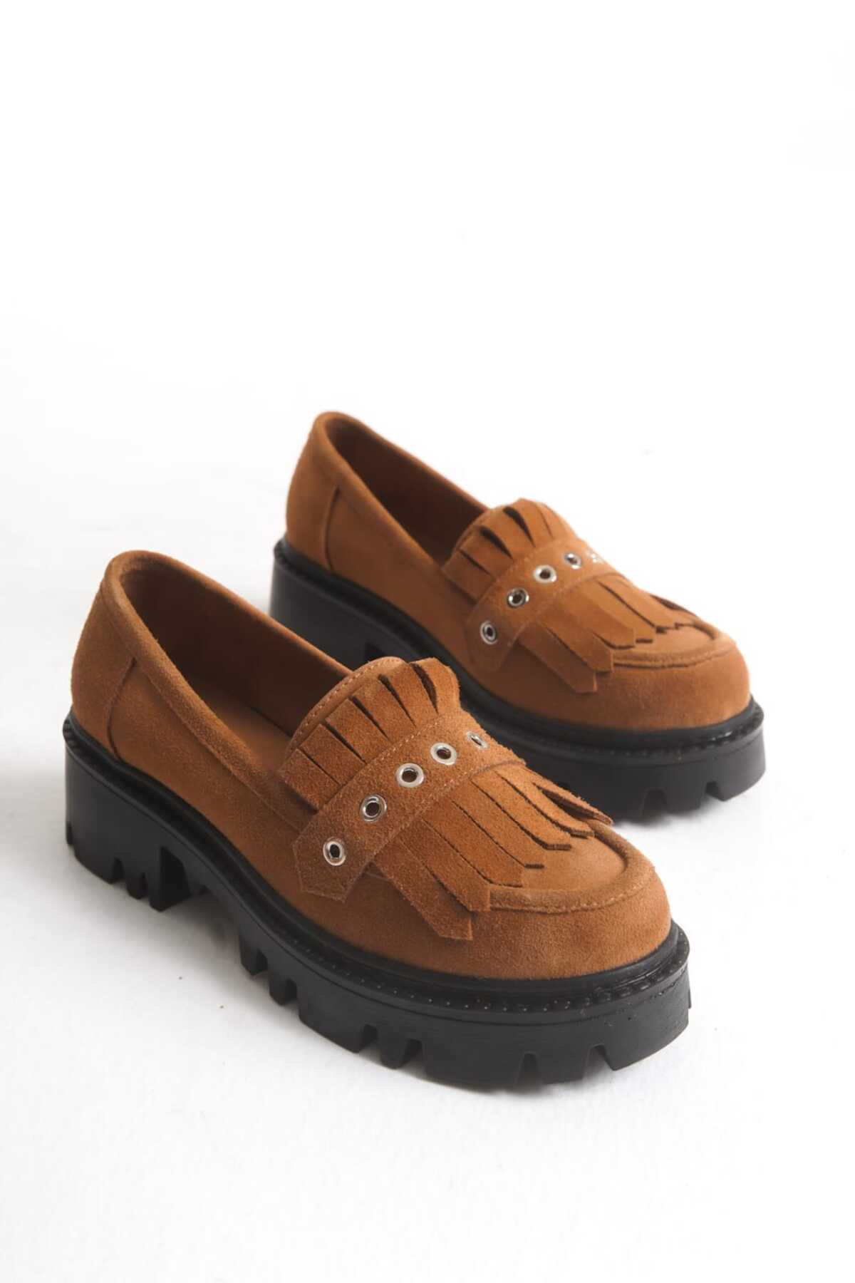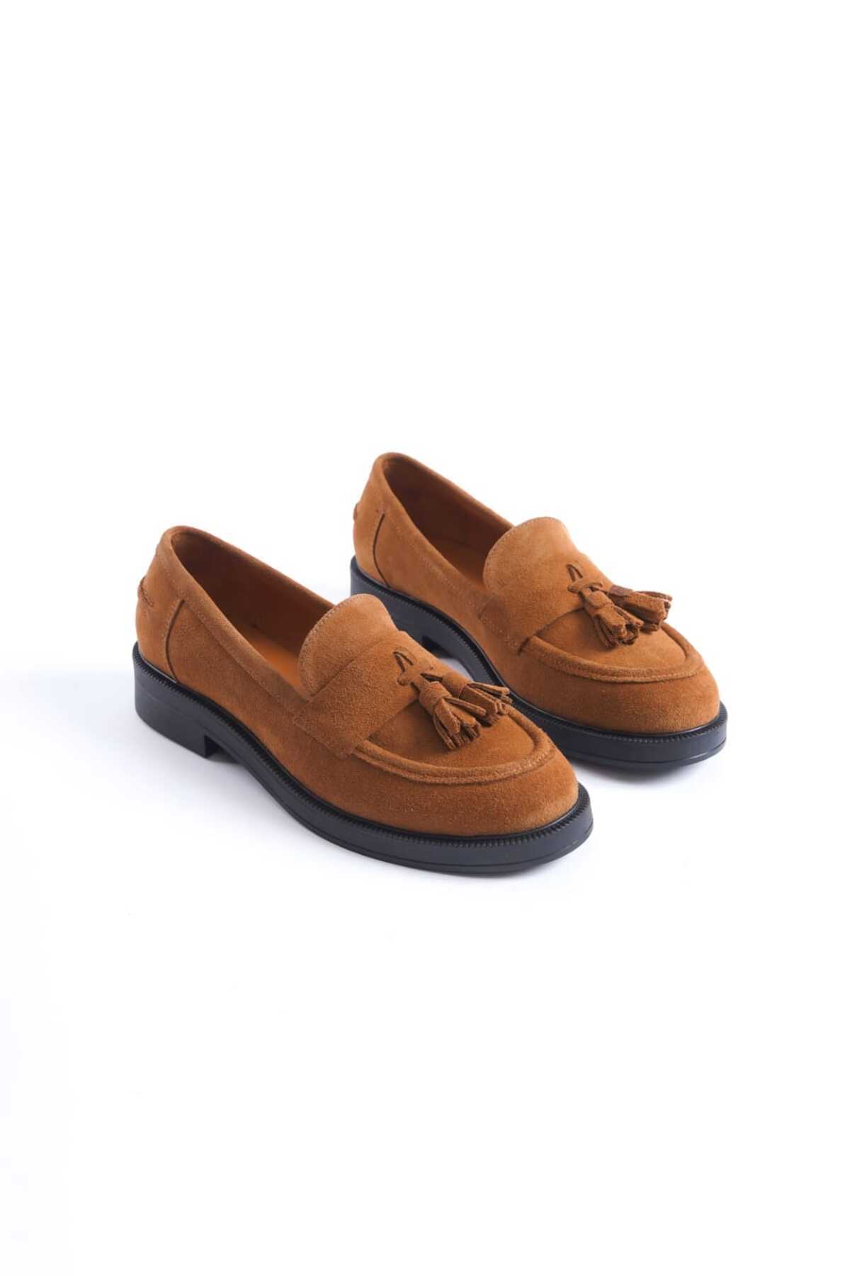 ALEXA Taba Süet Hakiki Deri Püsküllü Kadın Loafer Ayakkabı ALEXA Taba Süet Hakiki Deri Püsküllü Kadın Loafer Ayakkabı ERN-MARLİ-LOAFER 41