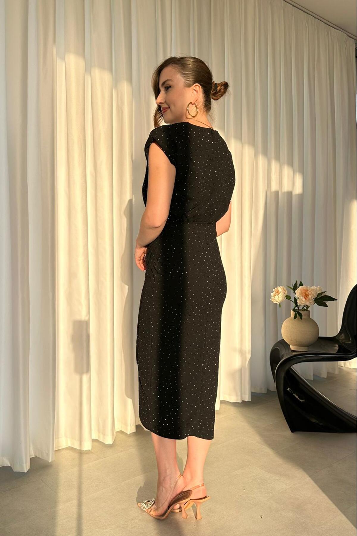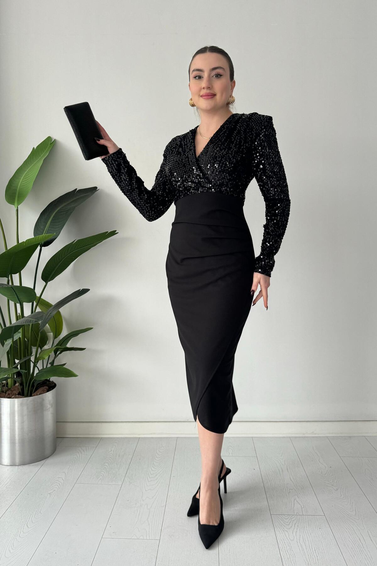 Kruvaze Parıltılı Elbise Siyah Kruvaze Parıltılı Elbise Siyah ccf3-16602 XL