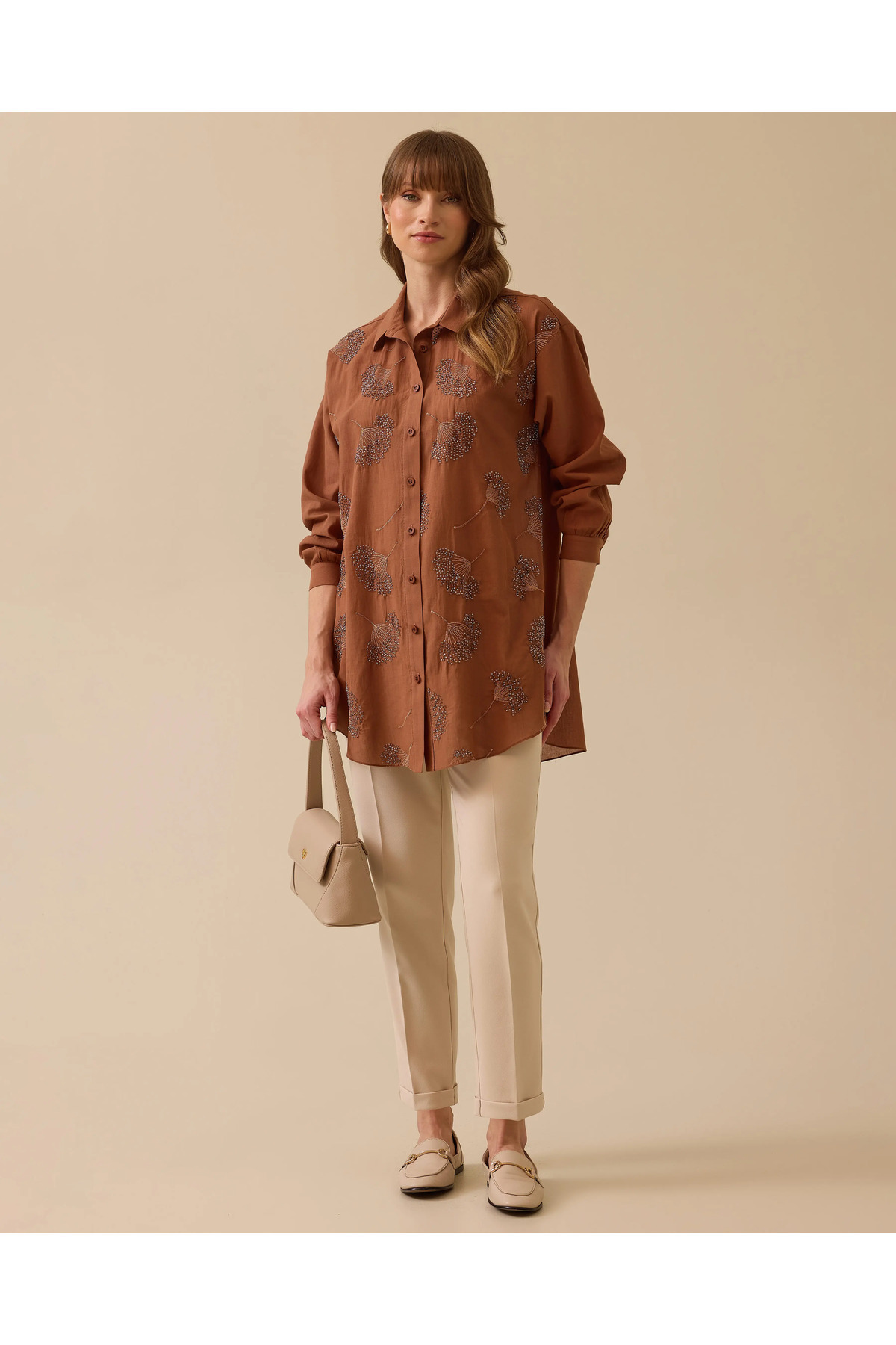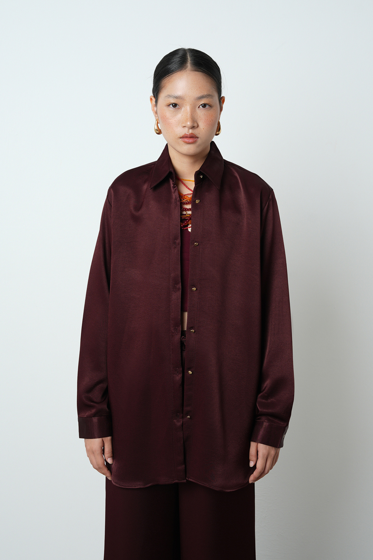 Kadın Bordo Dal Ve Yaprak Desenli Oversize Kesim Gömlek Kadın Bordo Dal Ve Yaprak Desenli Oversize Kesim Gömlek 34623 Standart