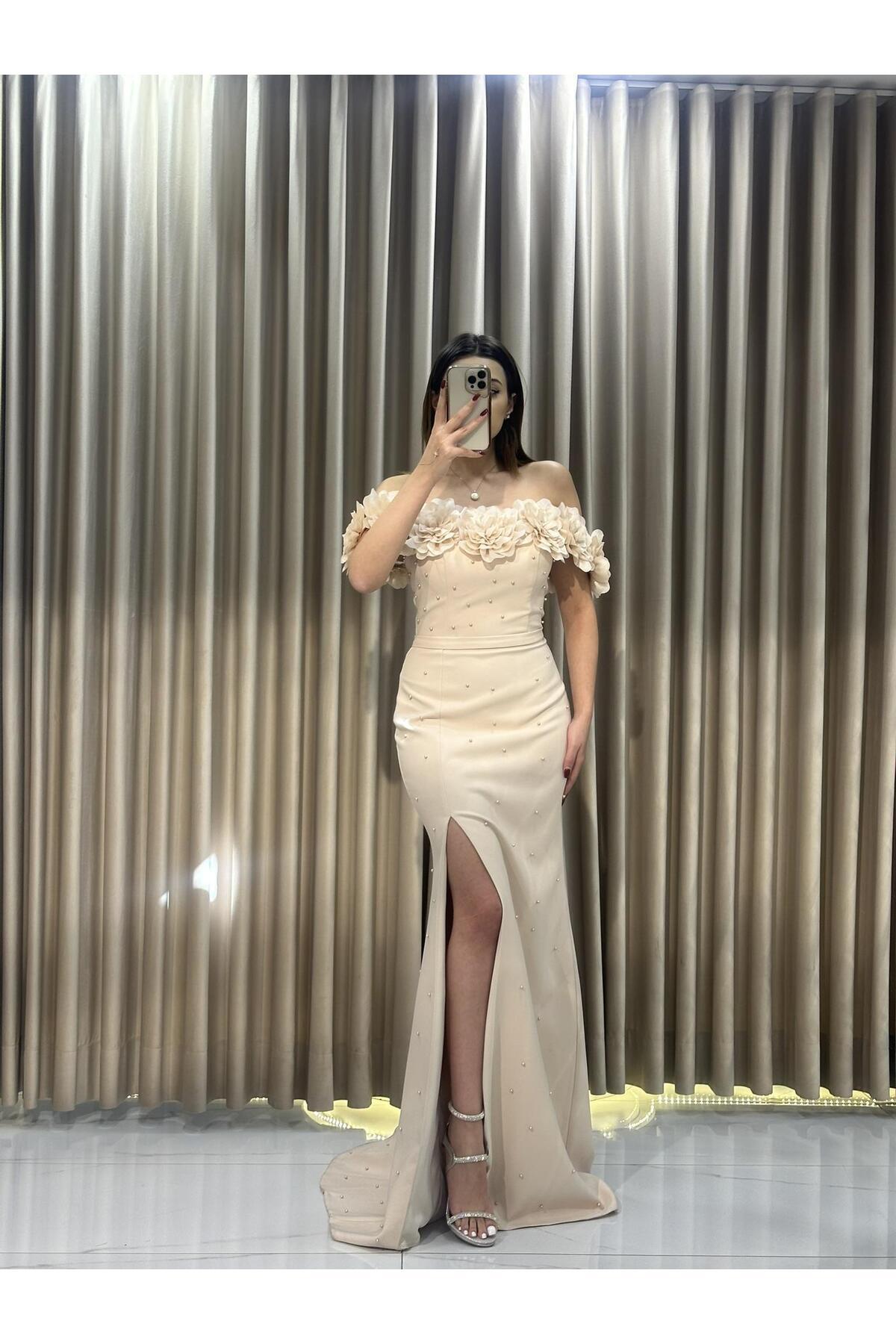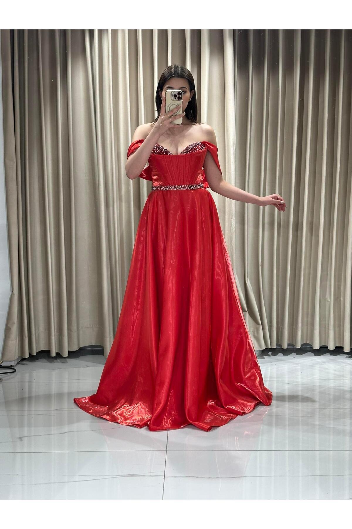 Kırmızı Taşlı Straplez Organze Elbise Kırmızı Taşlı Straplez Organze Elbise RK5259 42