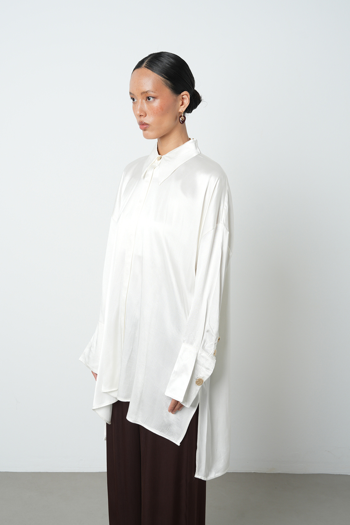Kadın Ekru Renk Düz Uzun Oversize Kesim Tesettür Gömlek Kadın Ekru Renk Düz Uzun Oversize Kesim Tesettür Gömlek 34721 Standart