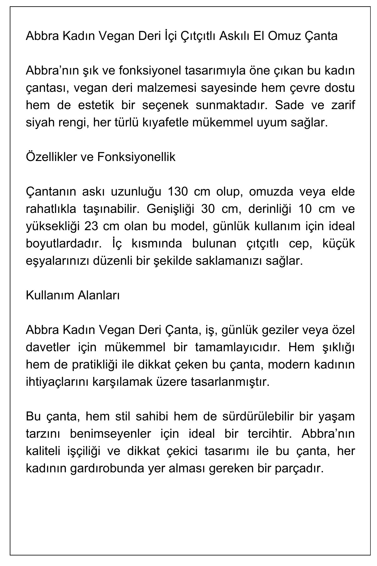 Kadın Vegan Deri İçi Çıtçıtlı Askılı El Omuz Çanta Kadın Vegan Deri İçi Çıtçıtlı Askılı El Omuz Çanta ABR-6134 Standart