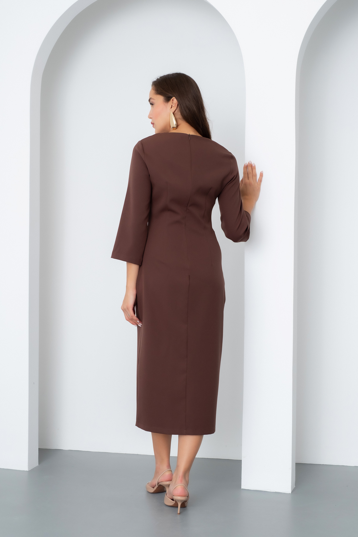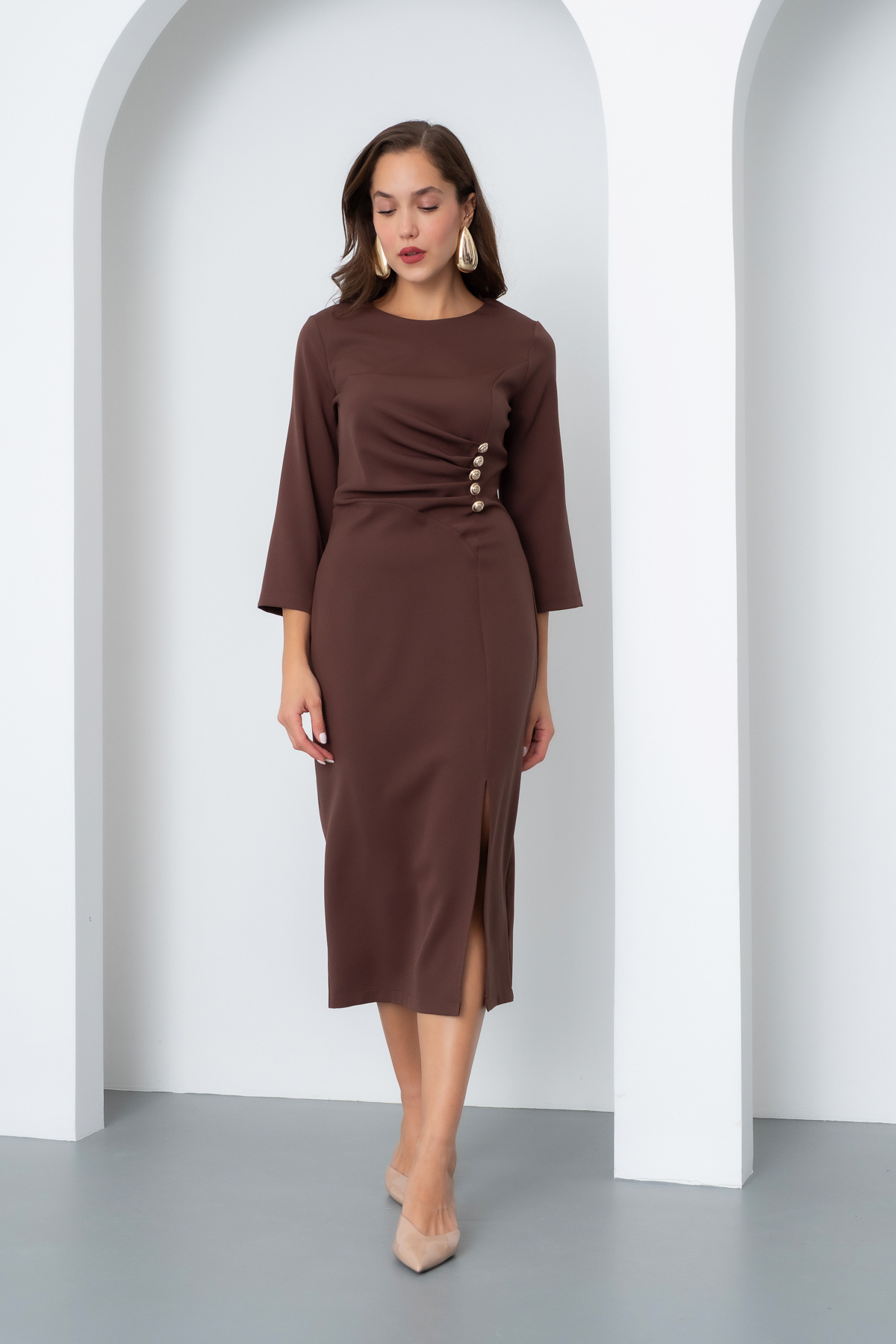 Kadın Kahverengi Düğme Detay Midi Davet Elbisesi Kadın Kahverengi Düğme Detay Midi Davet Elbisesi 25K221710 48