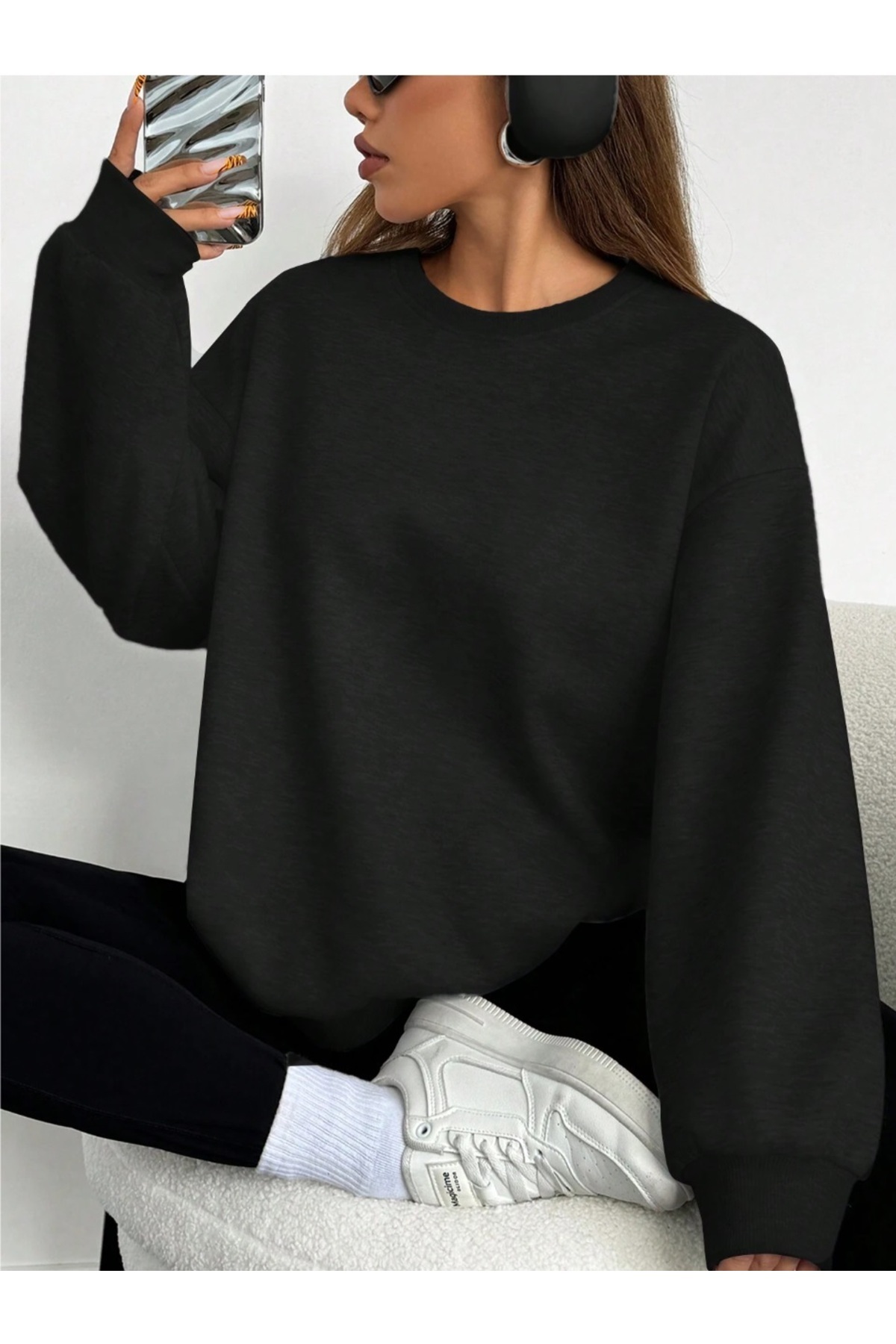 füme Baskılı Oversize Unisex Bisiklet Yaka Sweatshirt füme Baskılı Oversize Unisex Bisiklet Yaka Sweatshirt mlk-never XL
