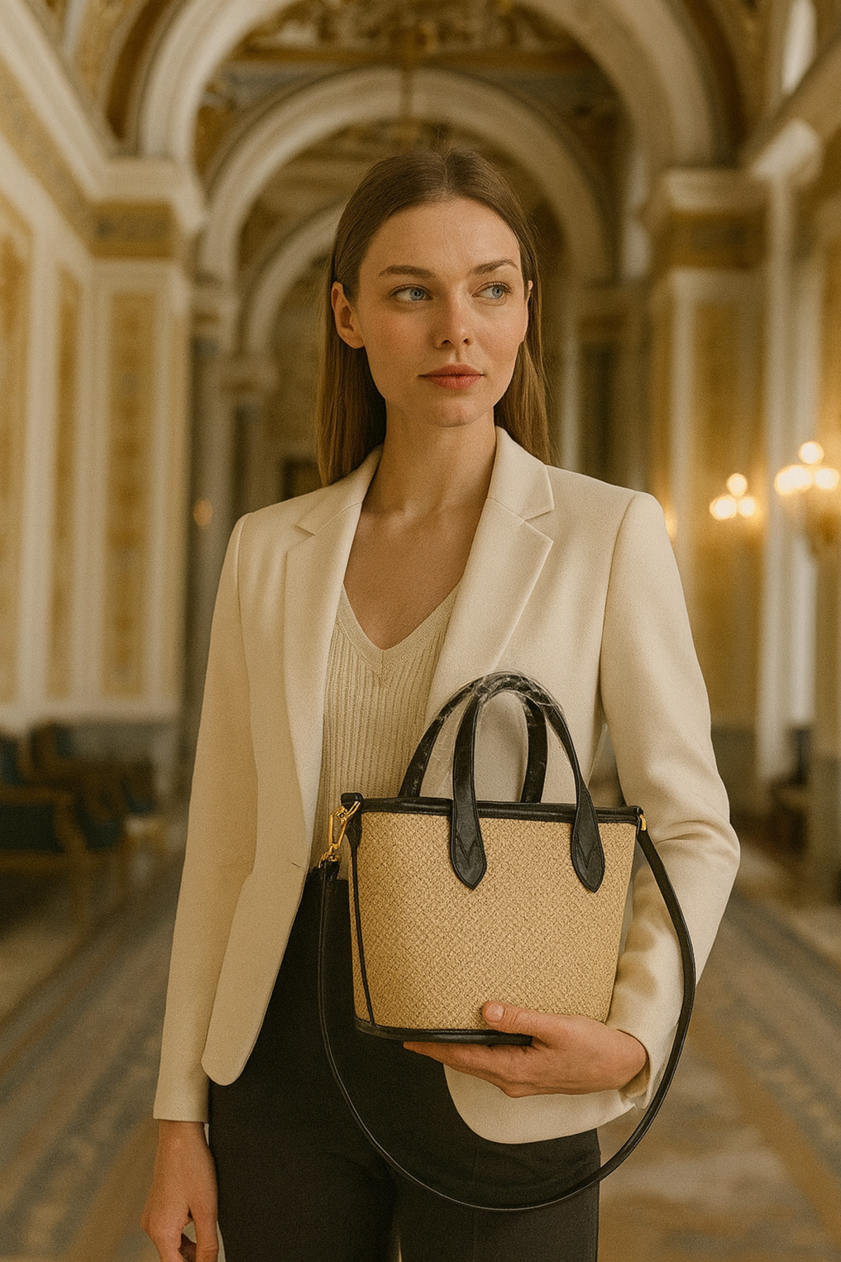 Lüks Hasır Görünümlü Deri Detaylı Omuz ve El Çantası Lüks Hasır Görünümlü Deri Detaylı Omuz ve El Çantası Asırtryu60 تک سایز