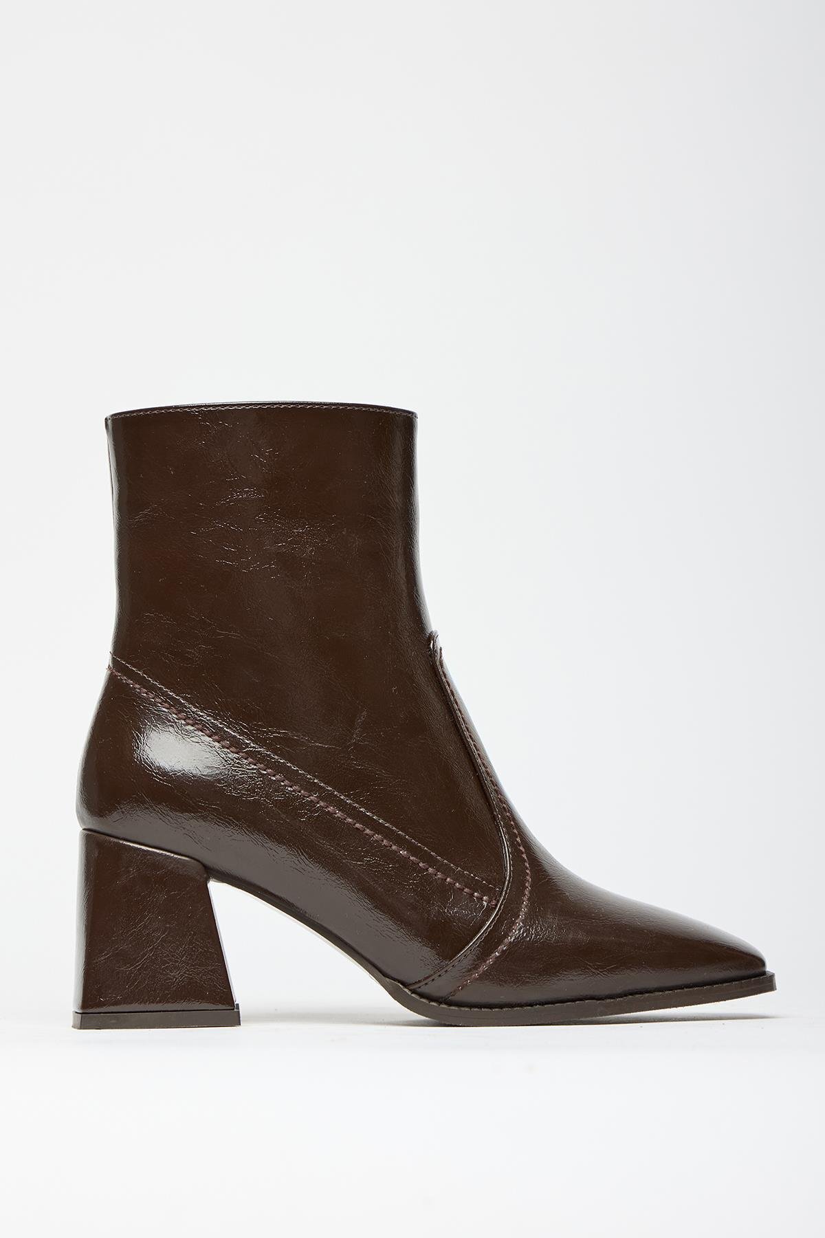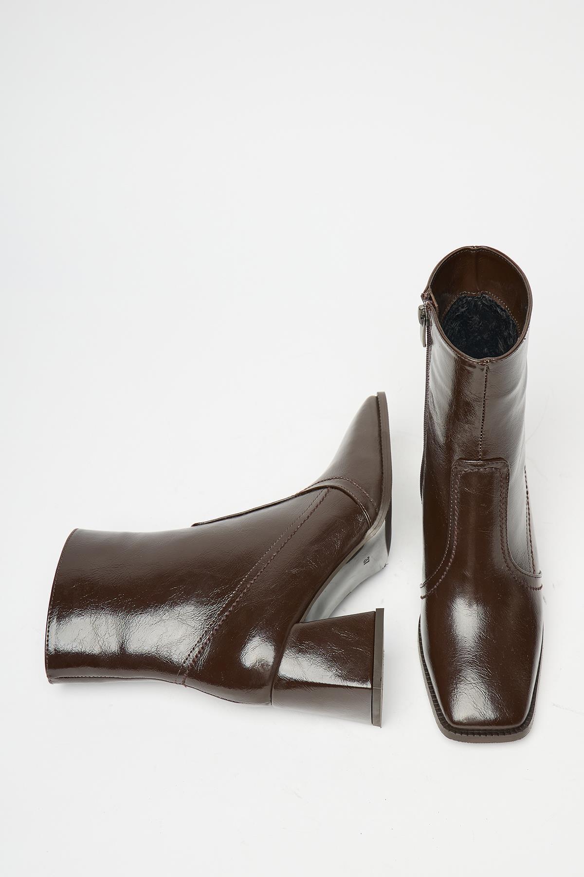 Kahverengi Rugan Kadın Topuklu Kare Burun Fermuarlı Bot Kahverengi Rugan Kadın Topuklu Kare Burun Fermuarlı Bot MK1345025KR20-006 40