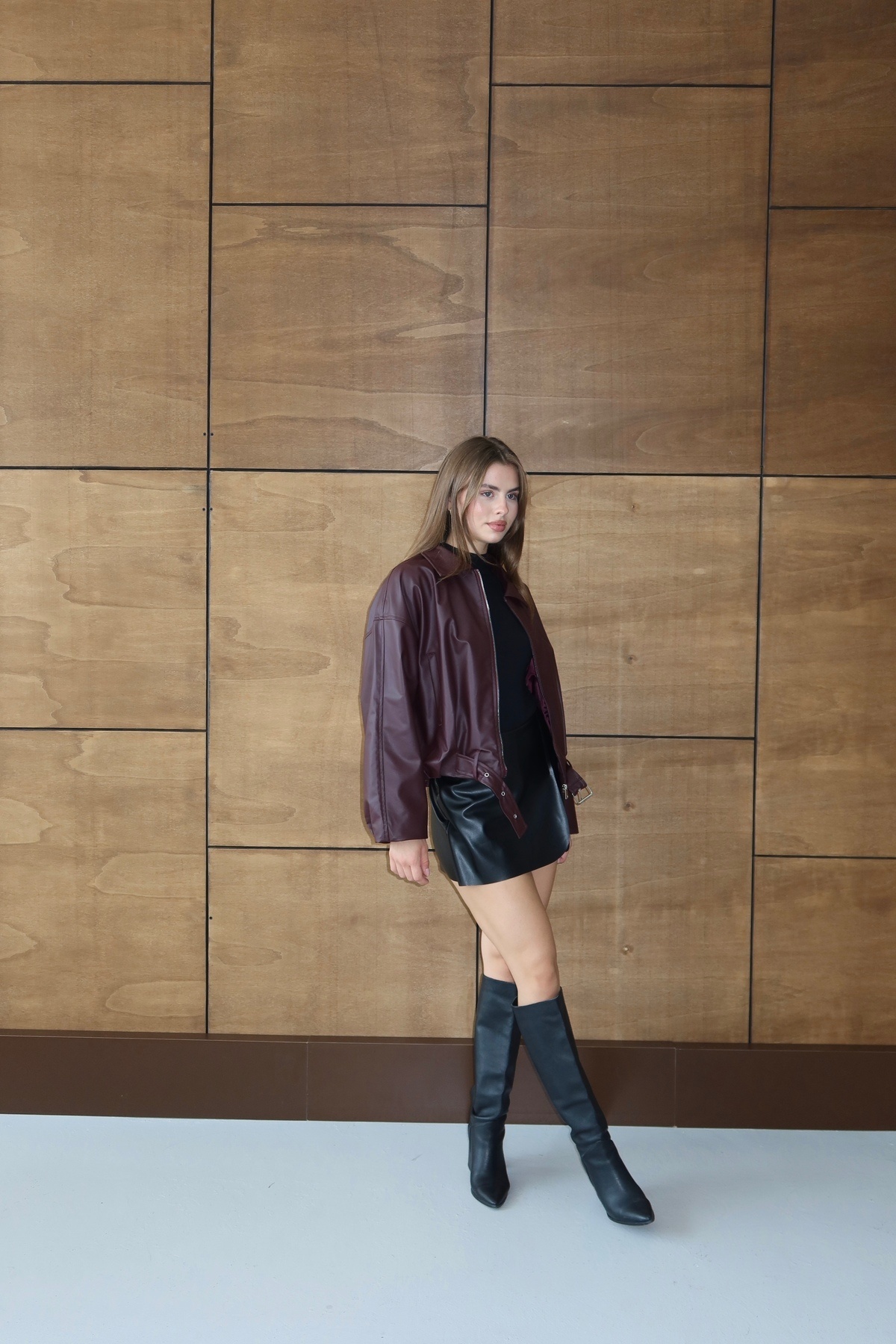 Kadın Kemer Detaylı Deri Ceket Kadın Kemer Detaylı Deri Ceket 00129 L
