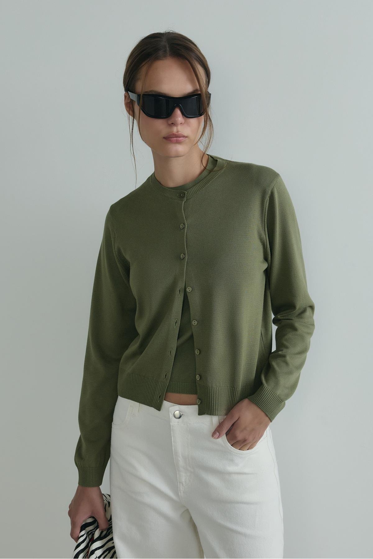 Haki Lea Triko Hırka Haki Lea Triko Hırka 418136502 40