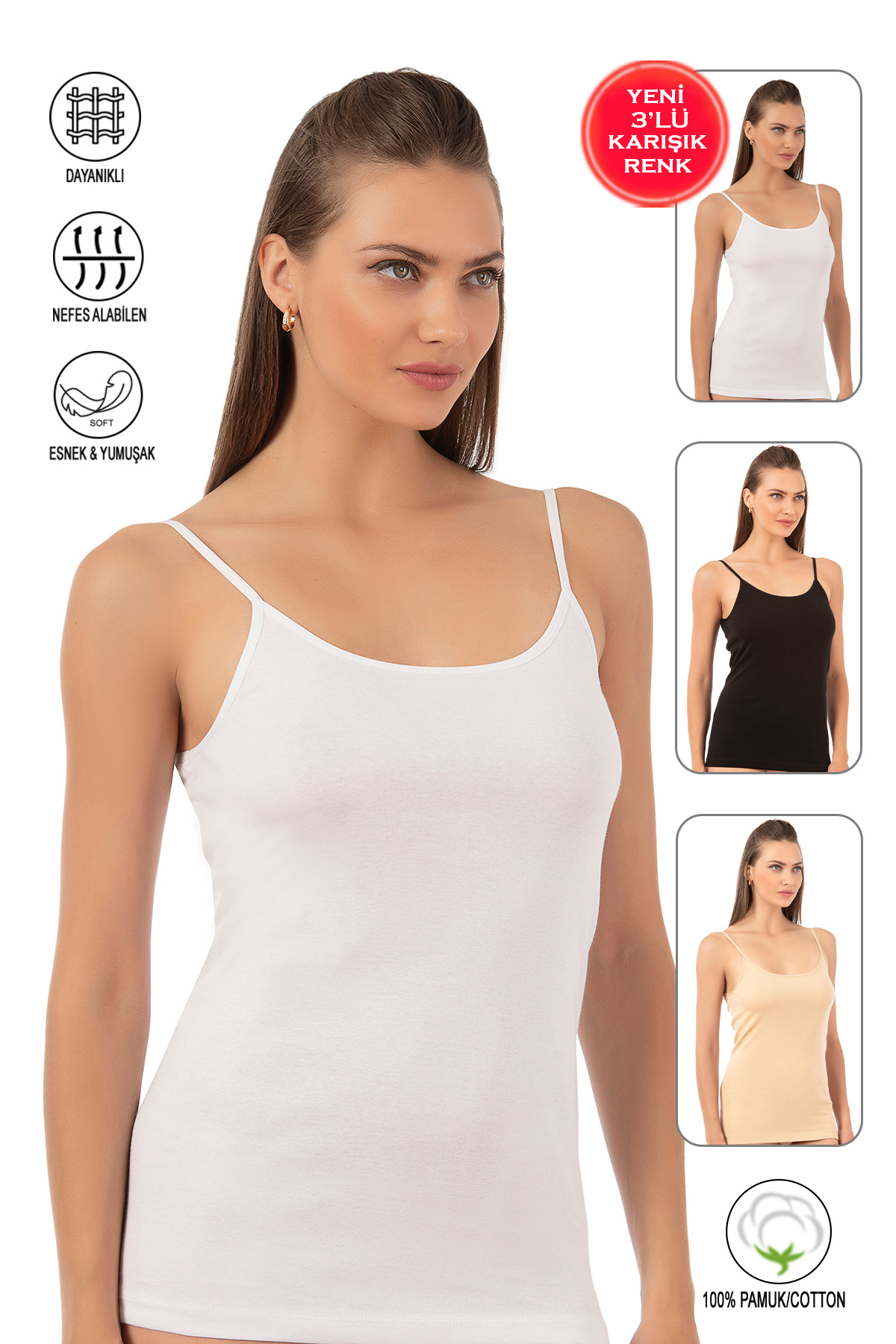 Özkan 0107 3'lü Paket Kadın %100 Pamuklu Ribana Esnek Rahat Ip Askılı Örme Atlet Özkan 0107 3'lü Paket Kadın %100 Pamuklu Ribana Esnek Rahat Ip Askılı Örme Atlet 0107-p03 4XL