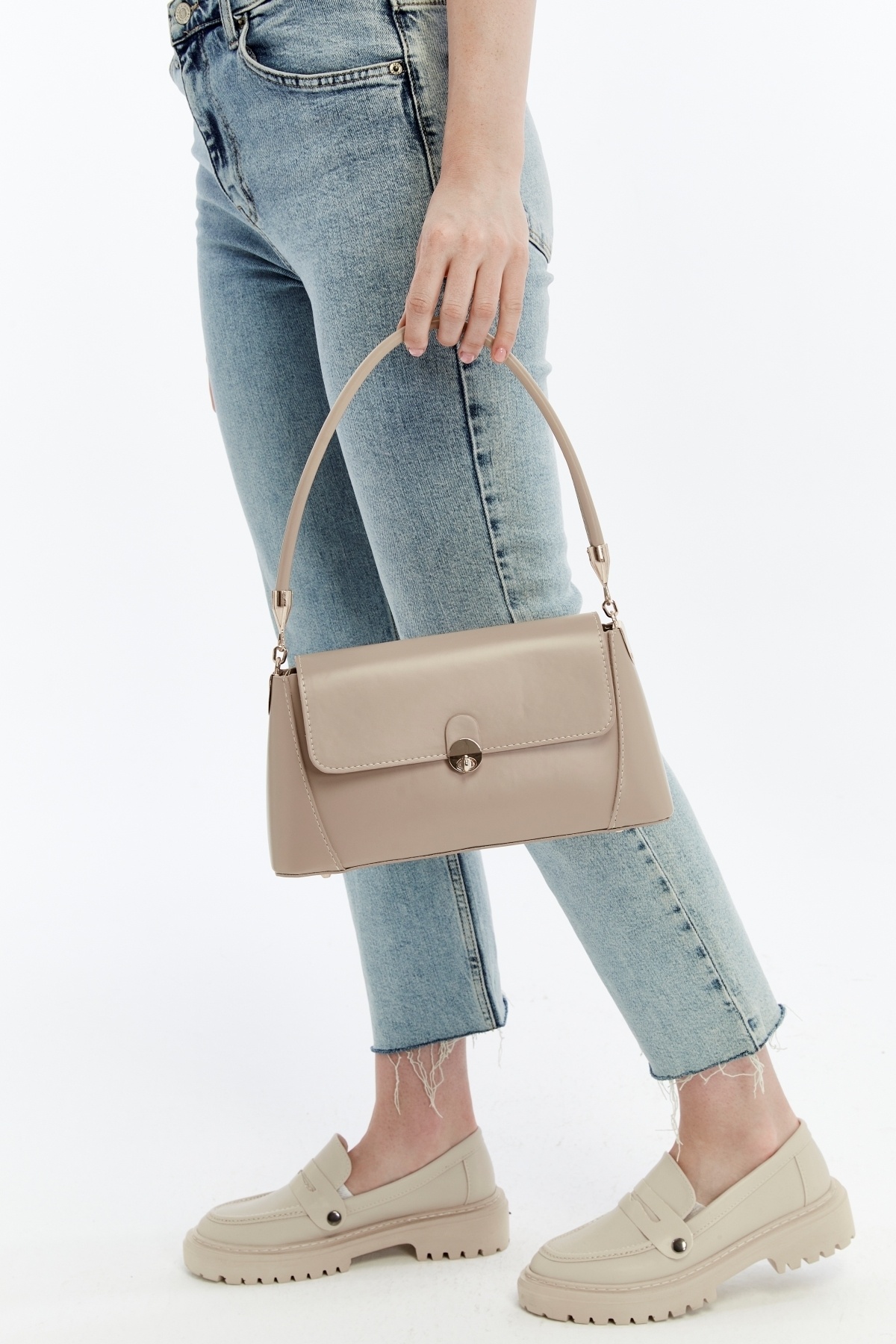 Vizon Kadın Retro Önden Kapaklı Deri Görünümlü Omuz Çantası Vizon Kadın Retro Önden Kapaklı Deri Görünümlü Omuz Çantası MK1020024SA24-001 تک سایز