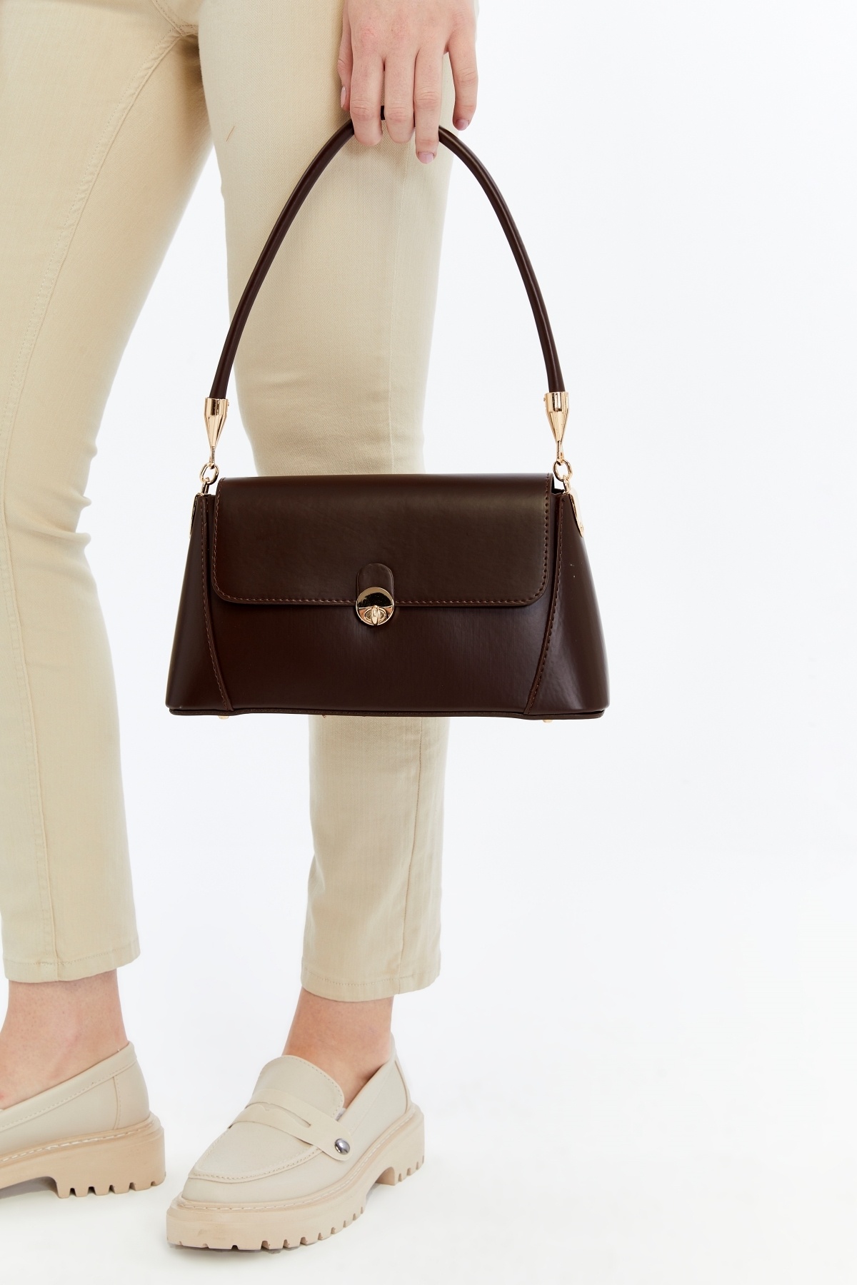 Acı Kahve Kadın Retro Önden Kapaklı Deri Görünümlü Omuz Çantası Acı Kahve Kadın Retro Önden Kapaklı Deri Görünümlü Omuz Çantası MK1020024SA24-001 تک سایز