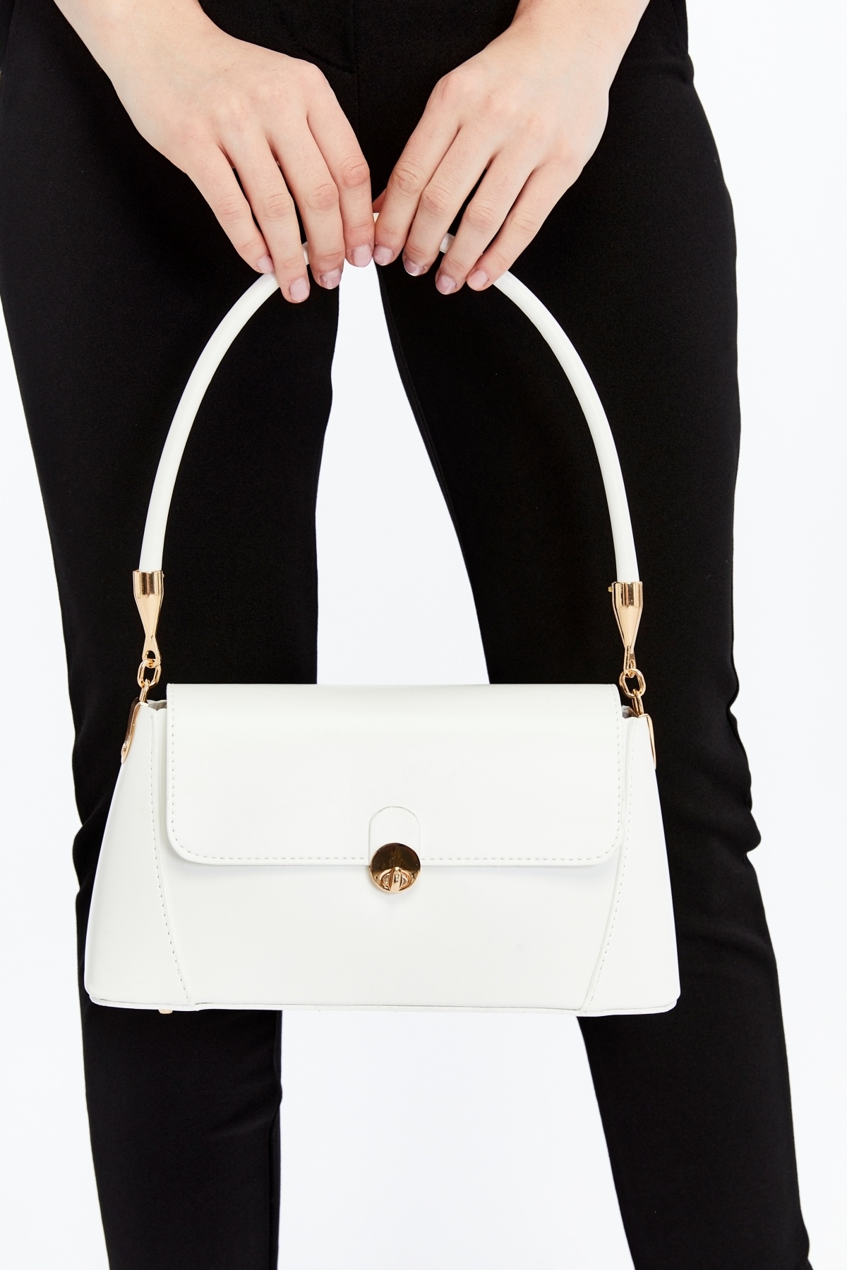 Beyaz Kadın Retro Önden Kapaklı Deri Görünümlü Omuz Çantası Beyaz Kadın Retro Önden Kapaklı Deri Görünümlü Omuz Çantası MK1020024SA24-001 تک سایز