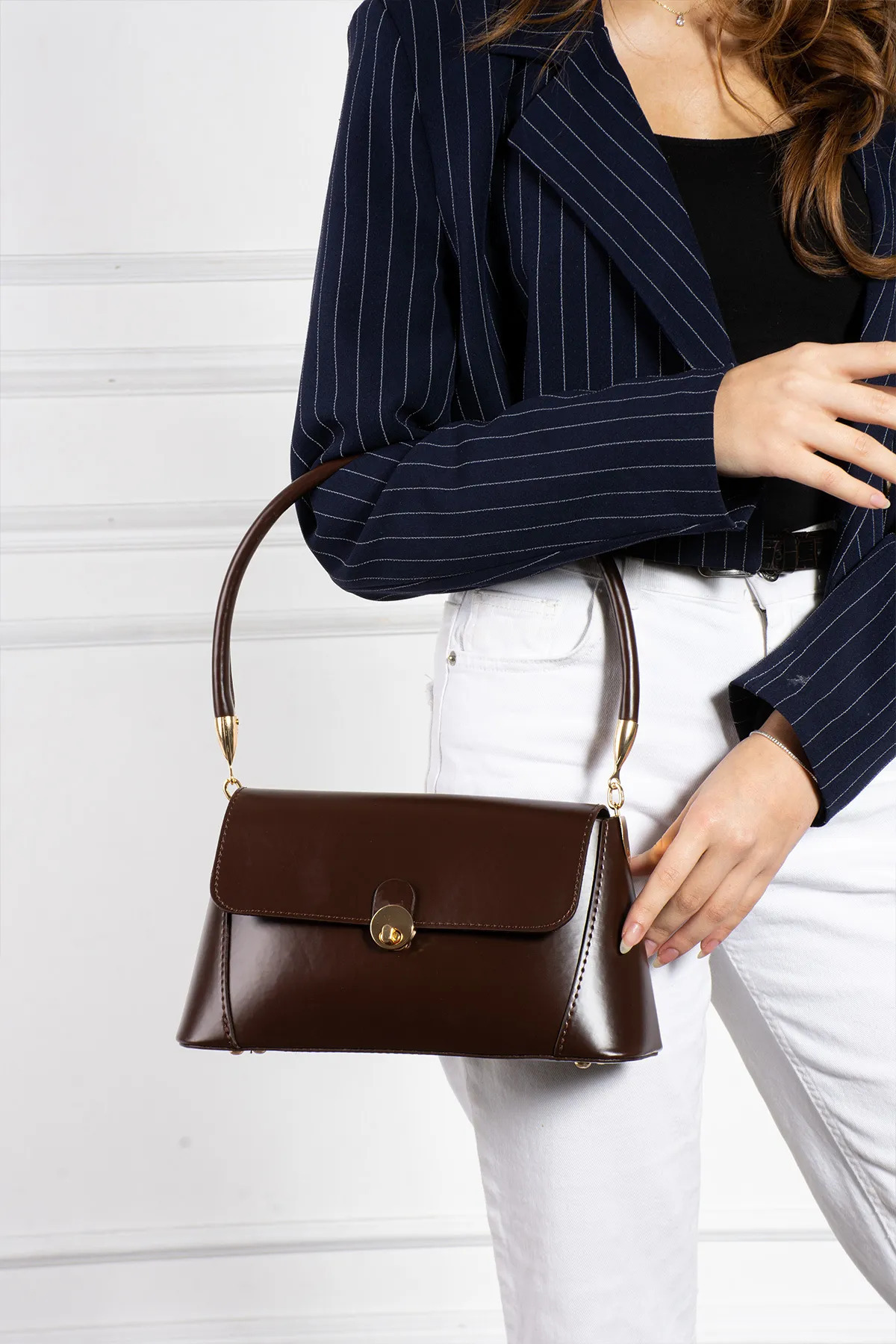 Krem Kadın Retro Önden Kapaklı Deri Görünümlü Omuz Çantası Krem Kadın Retro Önden Kapaklı Deri Görünümlü Omuz Çantası MK1020024SA24-001 تک سایز