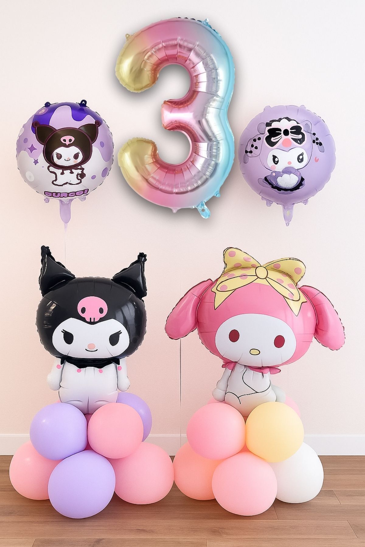 4 Yaş Kuromi ve My Melodi Balon Set Doğum Günü Balon Seti Gökkuşağı Rakam Helyum Uyumlu Uçan Balon 4 Yaş Kuromi ve My Melodi Balon Set Doğum Günü Balon Seti Gökkuşağı Rakam Helyum Uyumlu Uçan Balon KuromiSet17 تک سایز