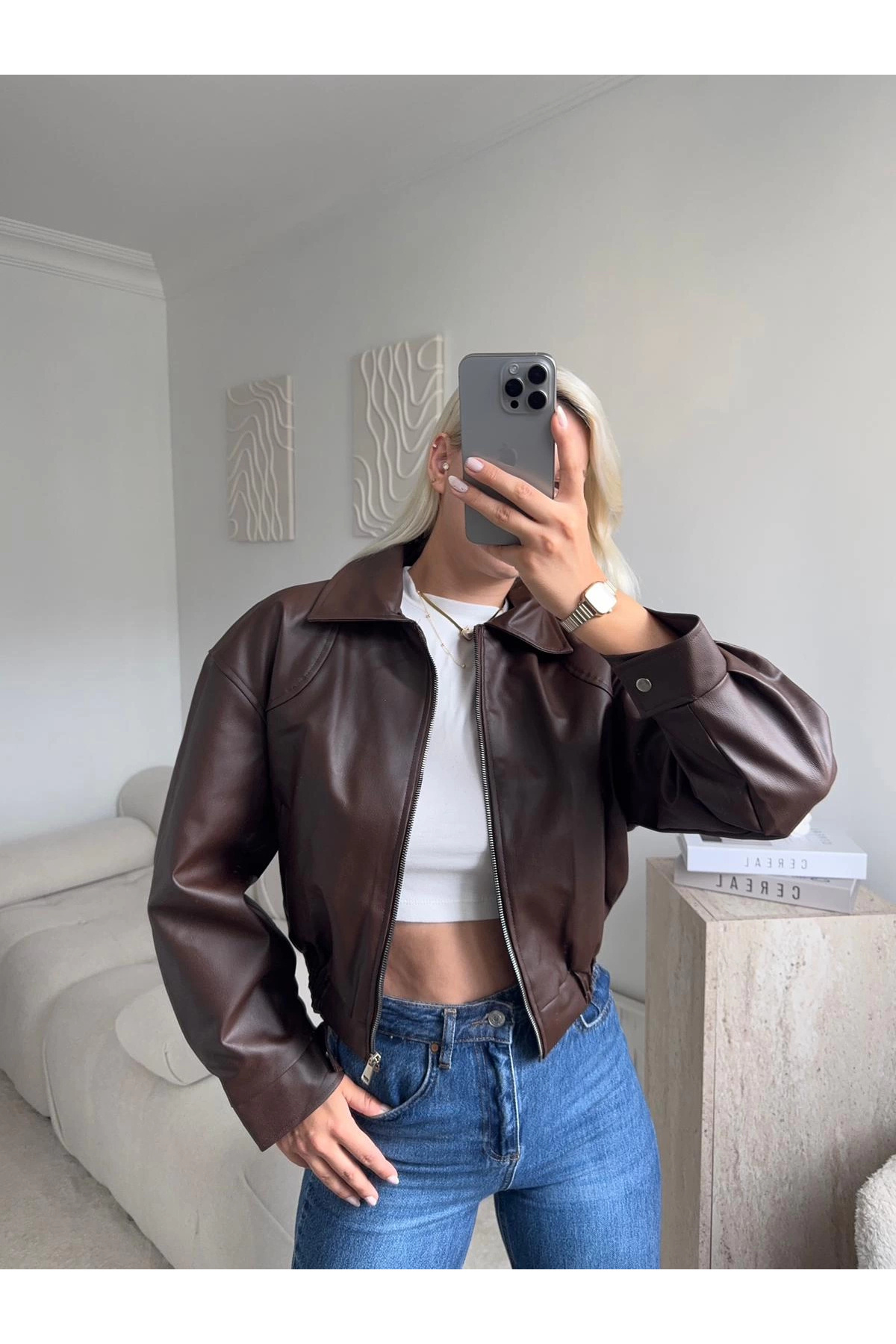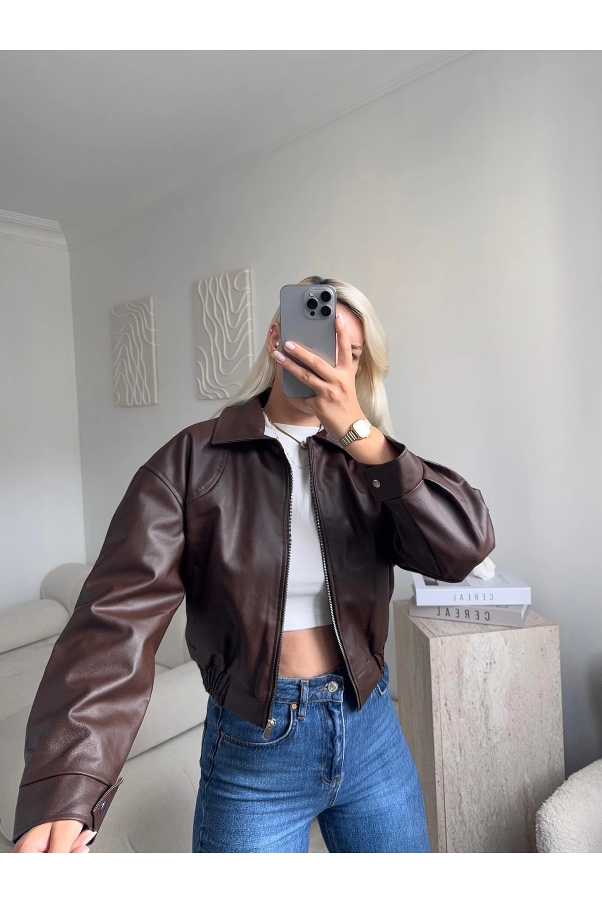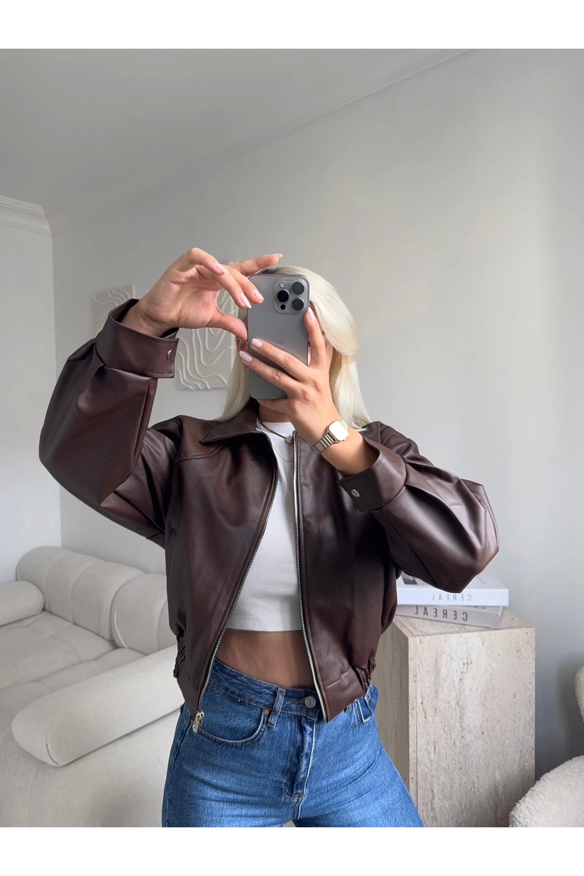 Bel Lastik Deri Ceket - KAHVE Bel Lastik Deri Ceket - KAHVE P3588S4176 XL