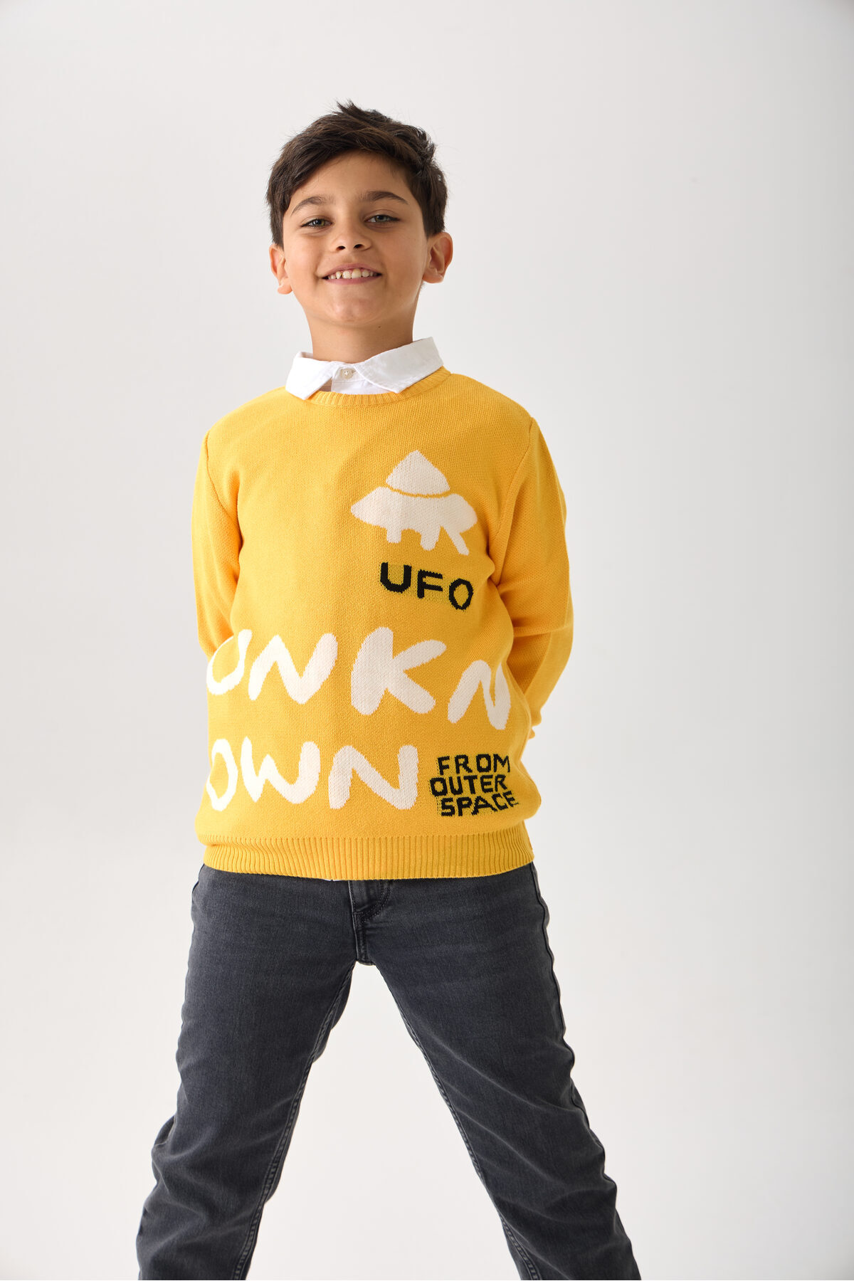 Bisiklet Yaka Renk Bloklu Uzun Kollu Erkek Çocuk Triko Kazak Bisiklet Yaka Renk Bloklu Uzun Kollu Erkek Çocuk Triko Kazak W31670Z4 13-14 Yaş