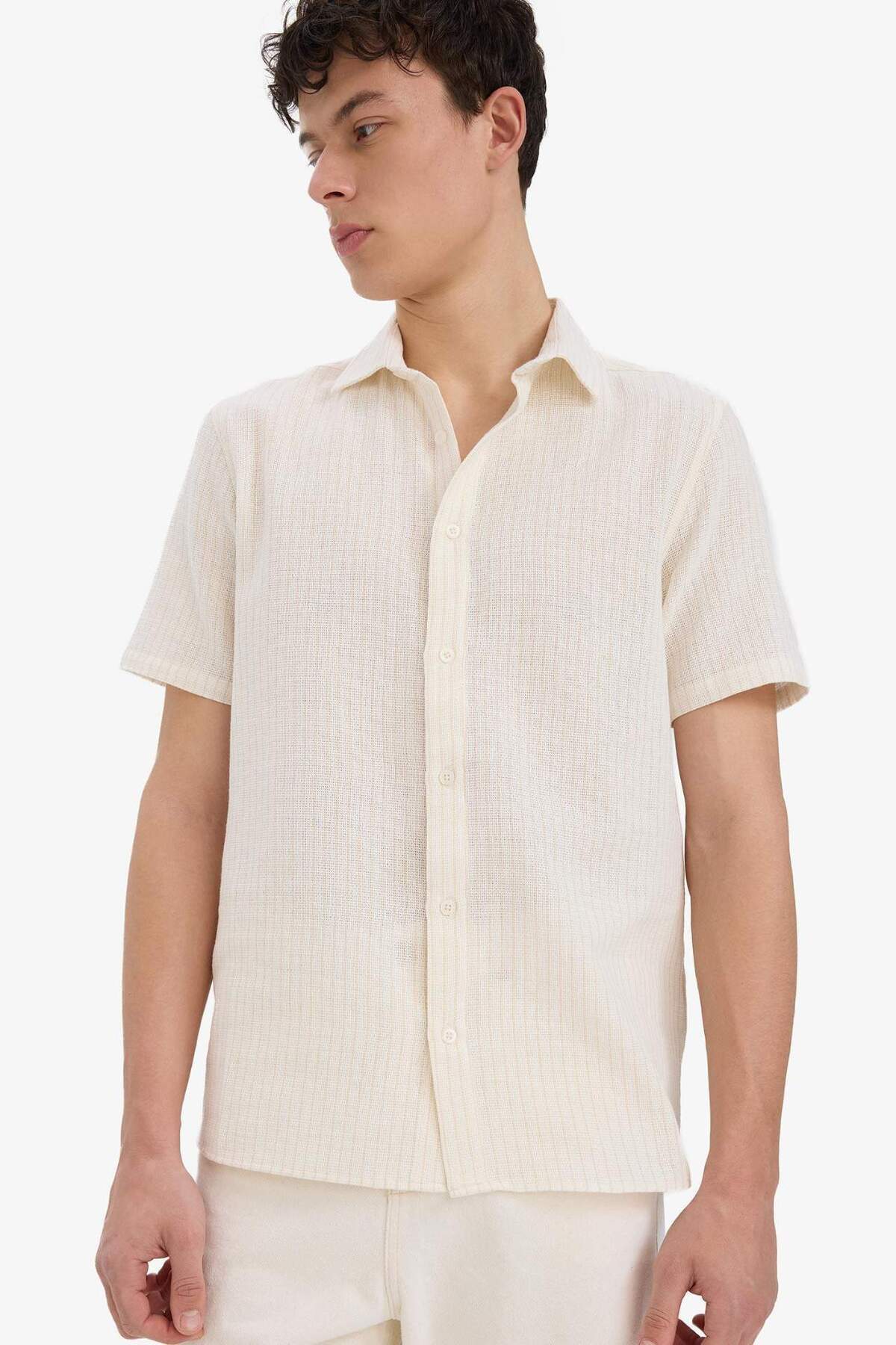 Slim Fit Kısa Kollu Çizgili Erkek Gömlek Slim Fit Kısa Kollu Çizgili Erkek Gömlek W4JO74Z8 2XL