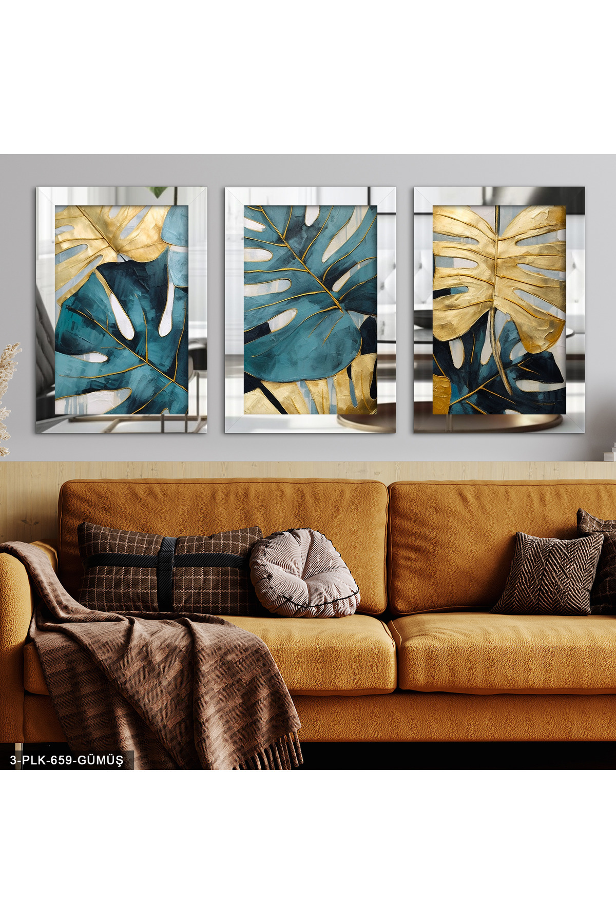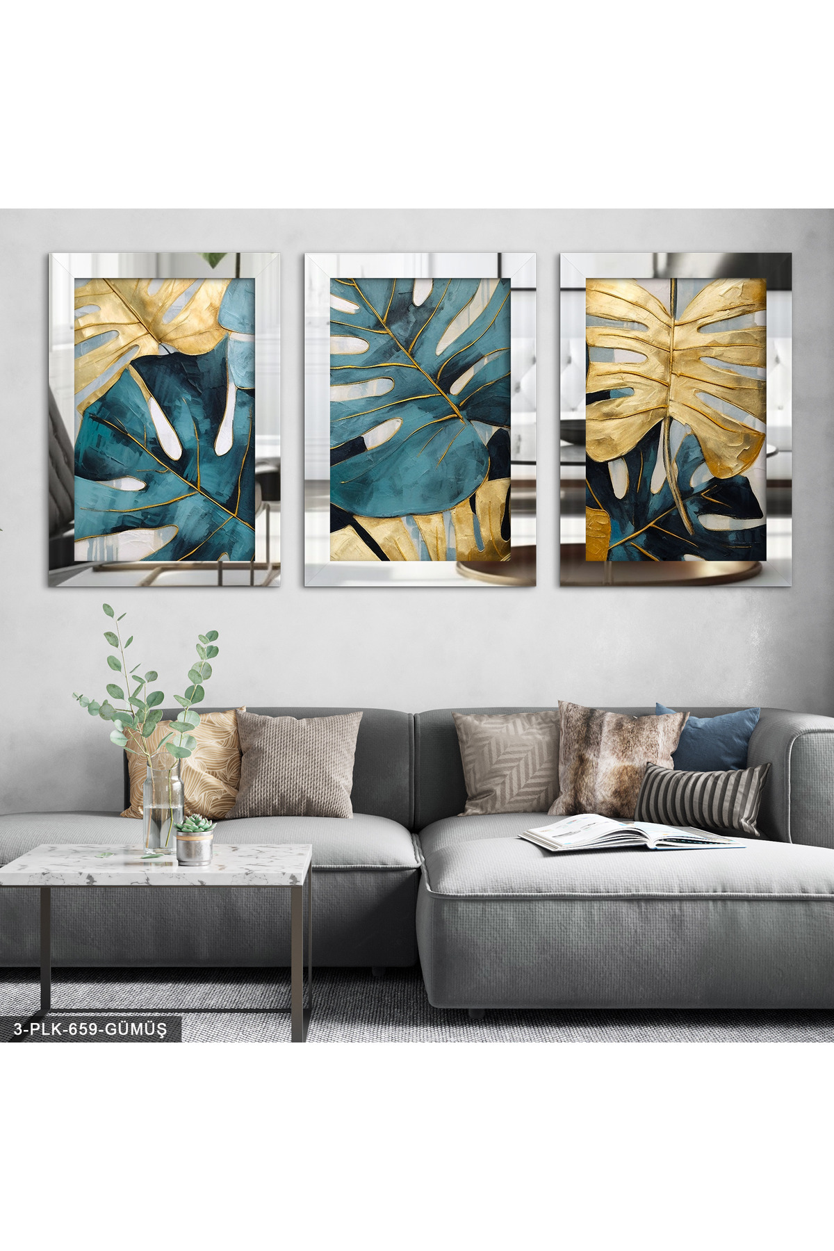Mavi Gold Yaprak 3 Parça Gümüş Pleksi Aynalı Tablo Mavi Gold Yaprak 3 Parça Gümüş Pleksi Aynalı Tablo EV-3-PLK-659 60 x 80