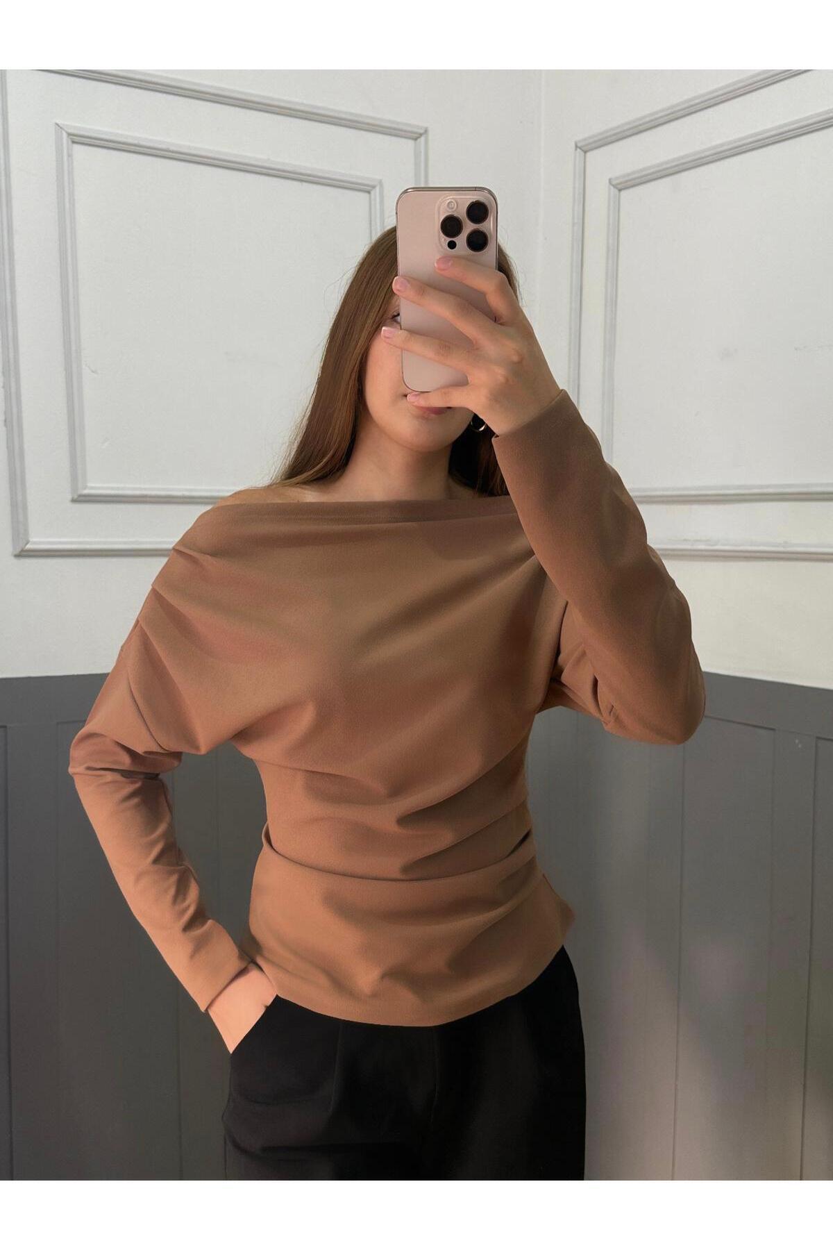 YENİ ÜRÜN Drape/Büzgü Detaylı Dökümlü Yaka Örme Krep Kumaş Uzun Kollu Bluz 0031 YENİ ÜRÜN Drape/Büzgü Detaylı Dökümlü Yaka Örme Krep Kumaş Uzun Kollu Bluz 0031 2XL