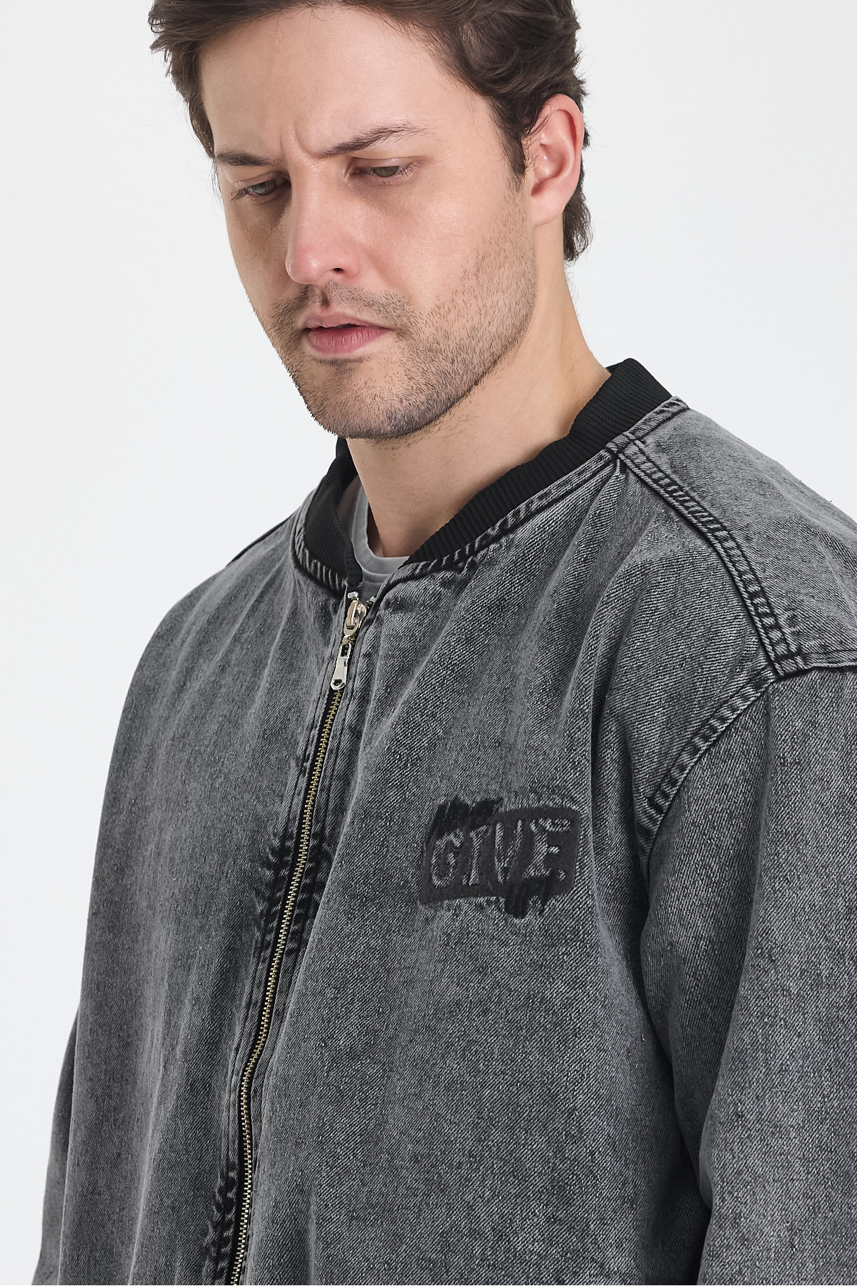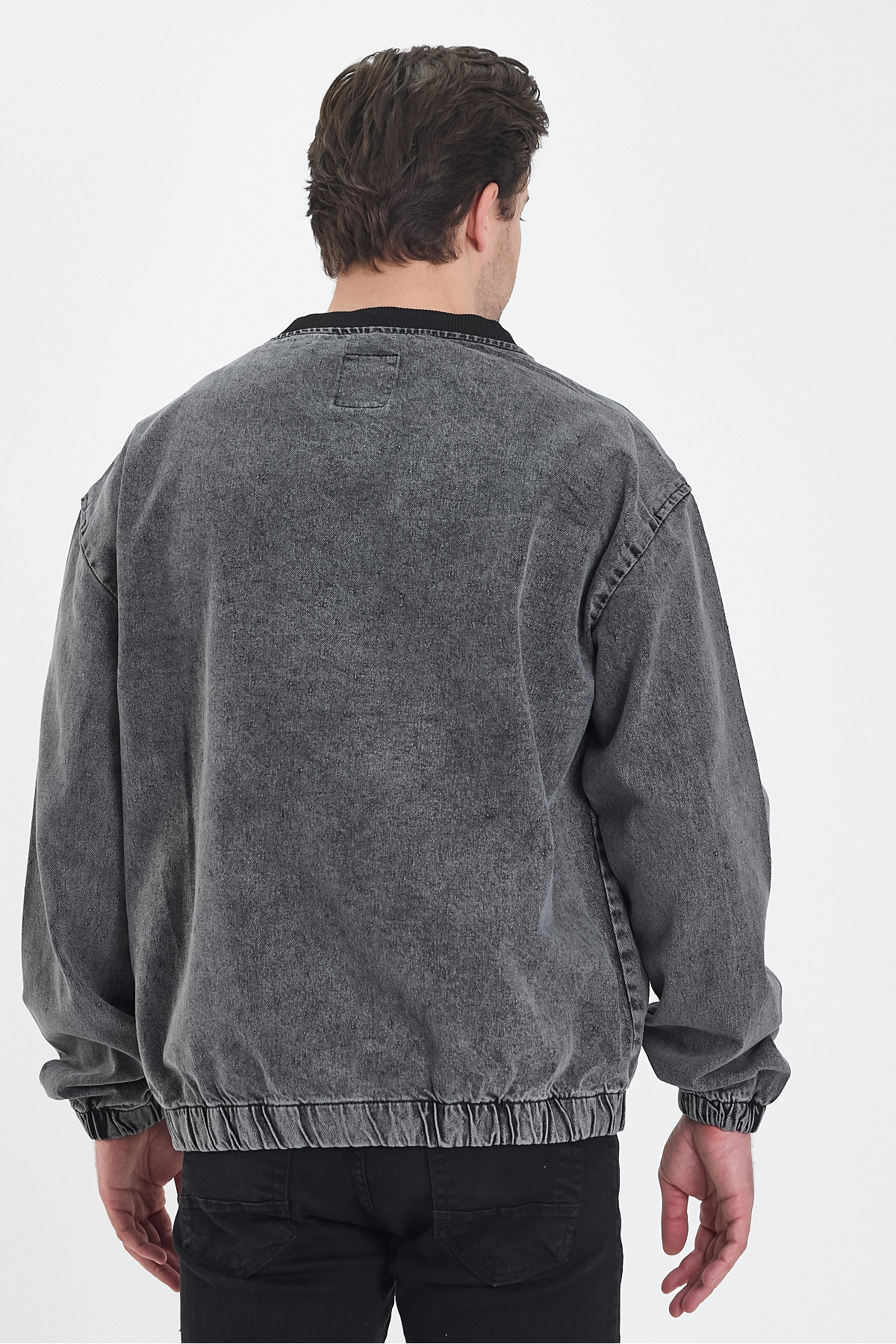 Erkek Basic Fermuarlı Oversize Kot Kolej Ceket Erkek Basic Fermuarlı Oversize Kot Kolej Ceket Ayna-1295DM 2XL