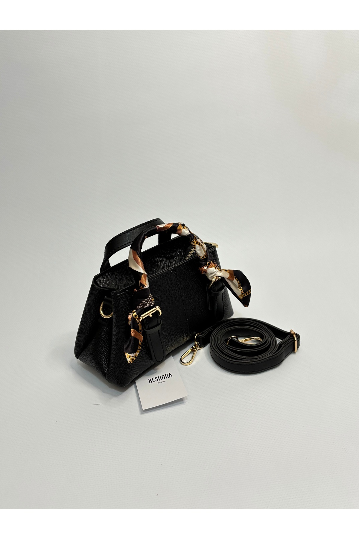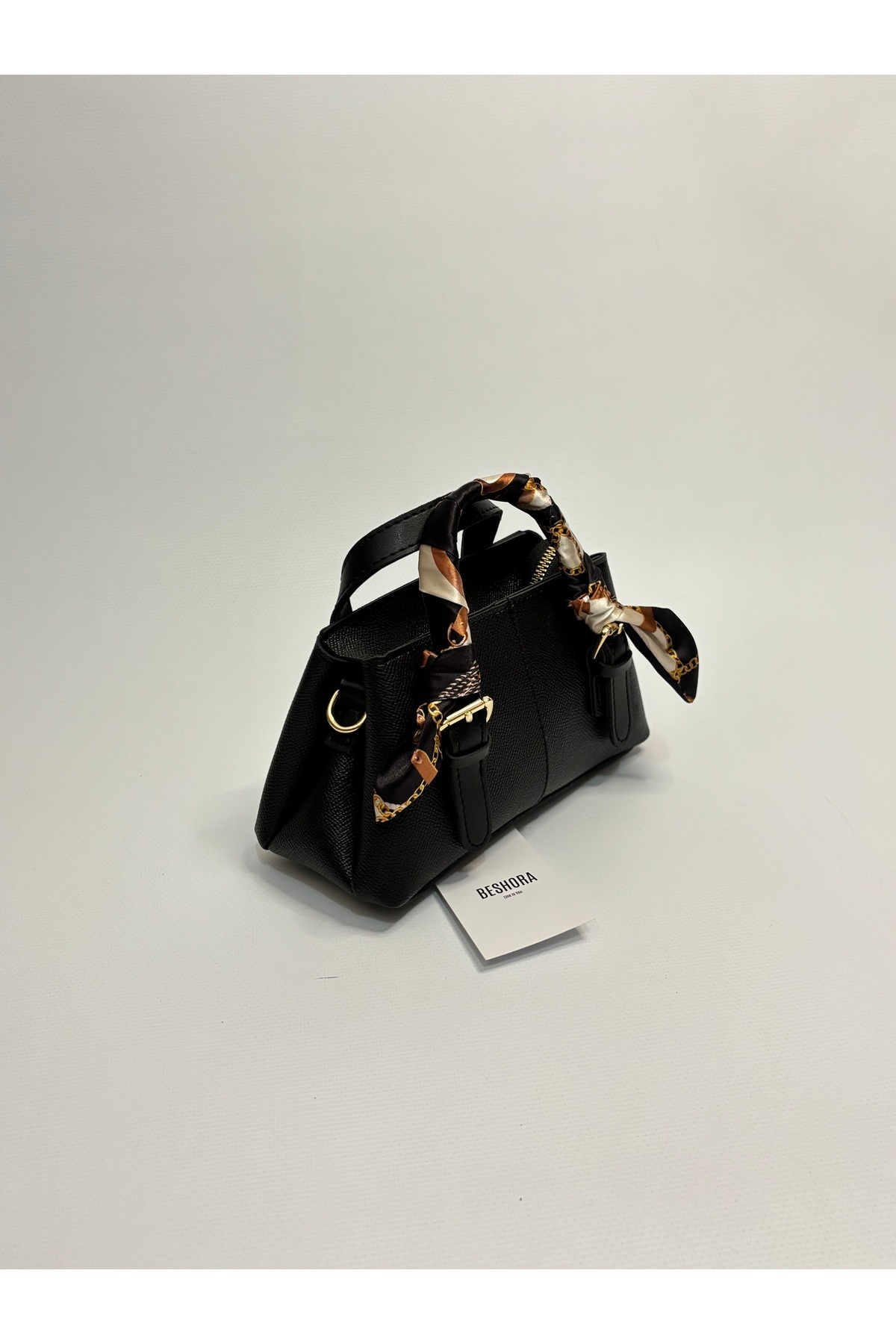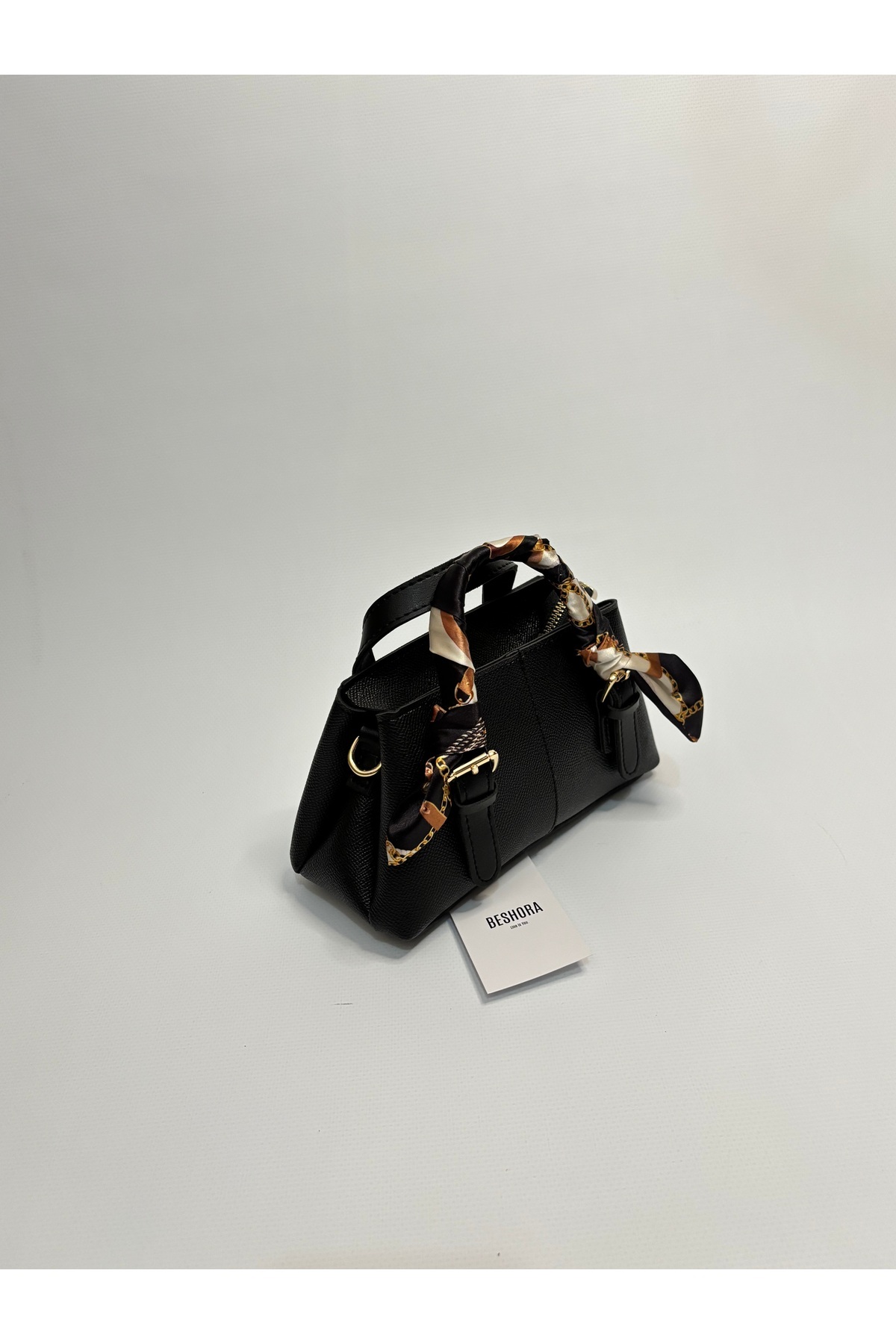 Nara Siyah Mat Kadın Şal Detaylı Mini Omuz ve El Çantası Nara Siyah Mat Kadın Şal Detaylı Mini Omuz ve El Çantası BSH1-016 Standart