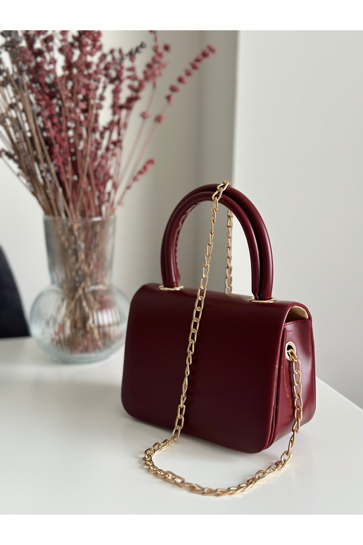 Nara Bordo Mat Kadın Şal Detaylı Mini Omuz ve El Çantası Nara Bordo Mat Kadın Şal Detaylı Mini Omuz ve El Çantası BSH1-016 Standart