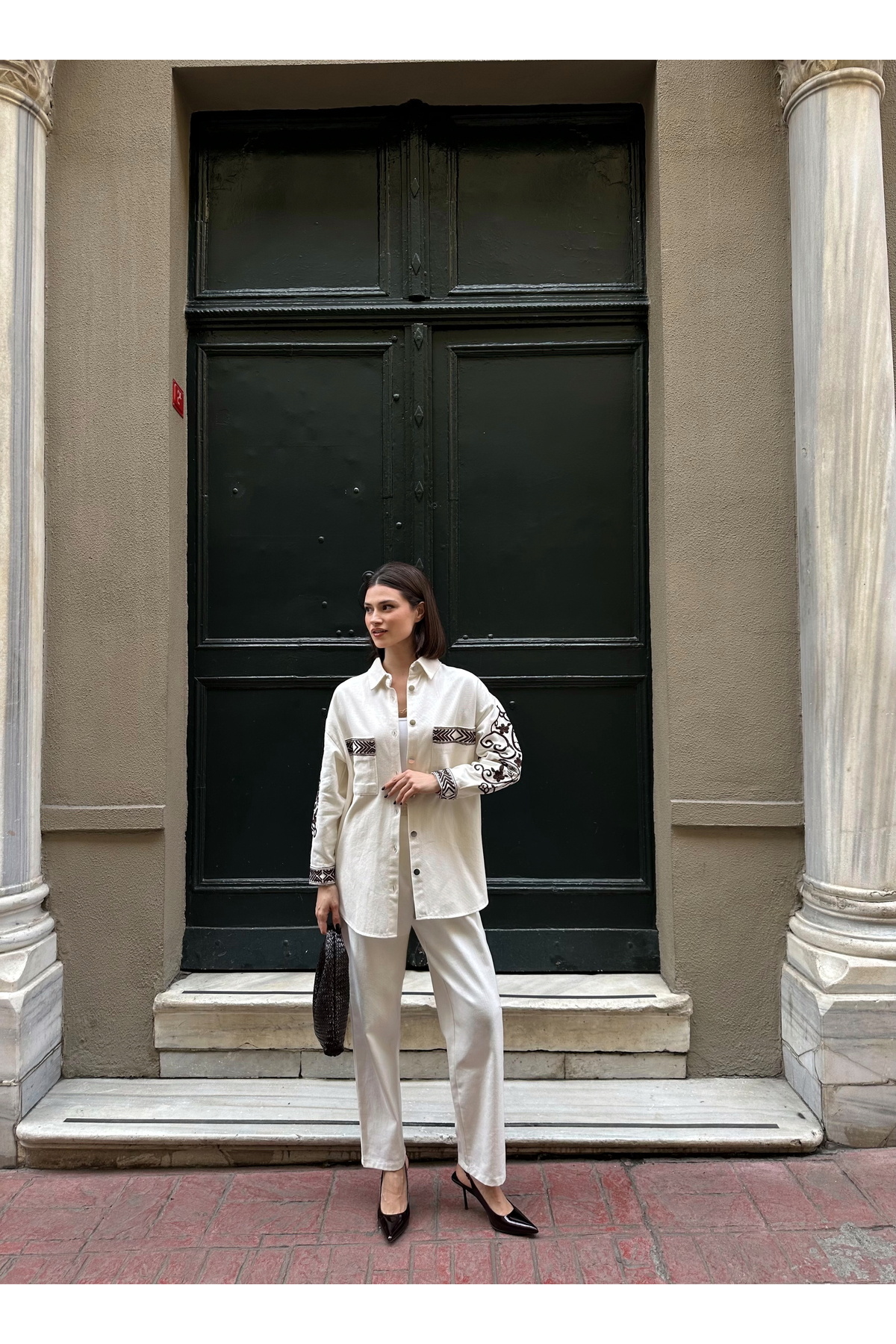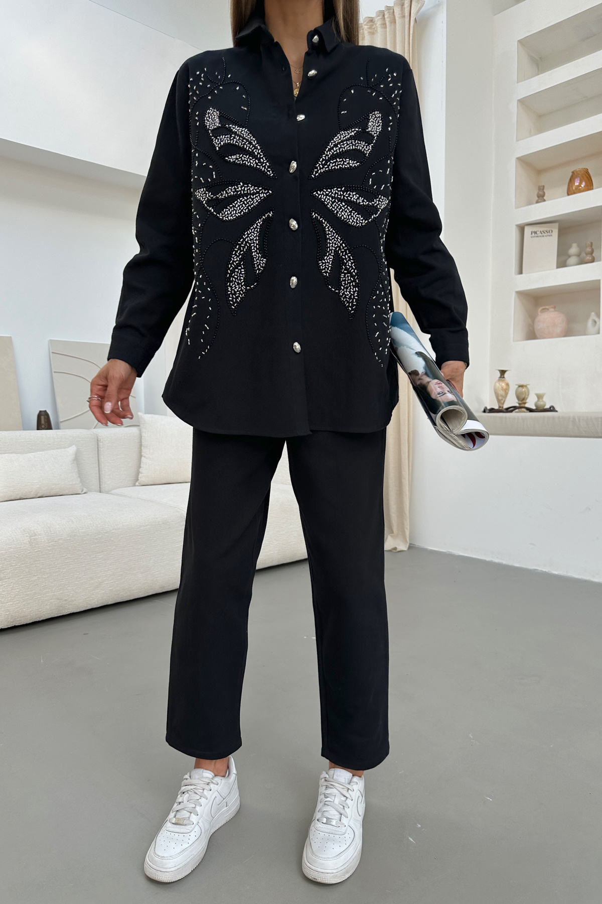 KADIN ÖNÜ BONCUK İŞLEMELİ GABARDİN GÖMLEK PANTOLON TAKIN KADIN ÖNÜ BONCUK İŞLEMELİ GABARDİN GÖMLEK PANTOLON TAKIN 2039-7275 XL
