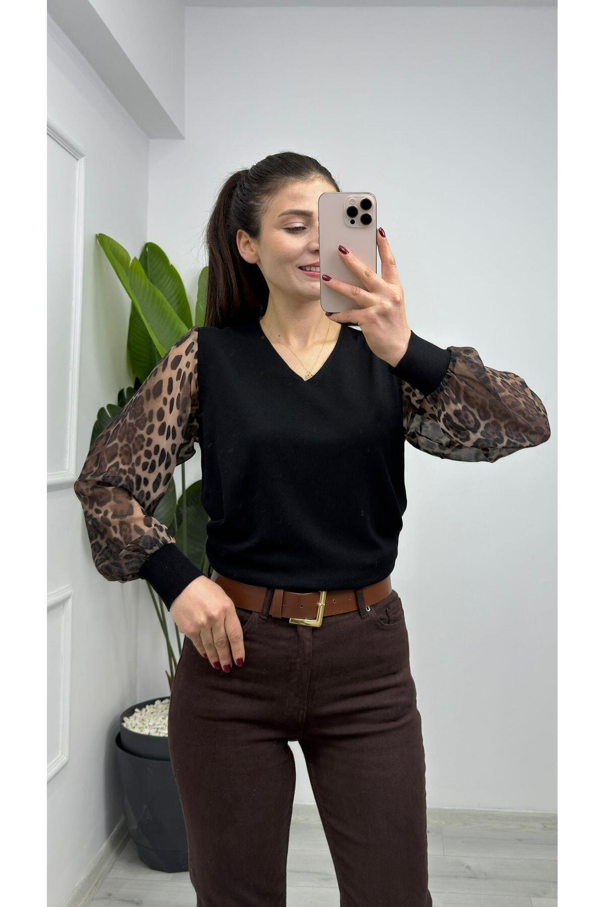 Bisiklet Yaka Uzun Kollu Kolları Tül Çiçekli Waffle Bluz Bisiklet Yaka Uzun Kollu Kolları Tül Çiçekli Waffle Bluz 072324 2XL-3XL