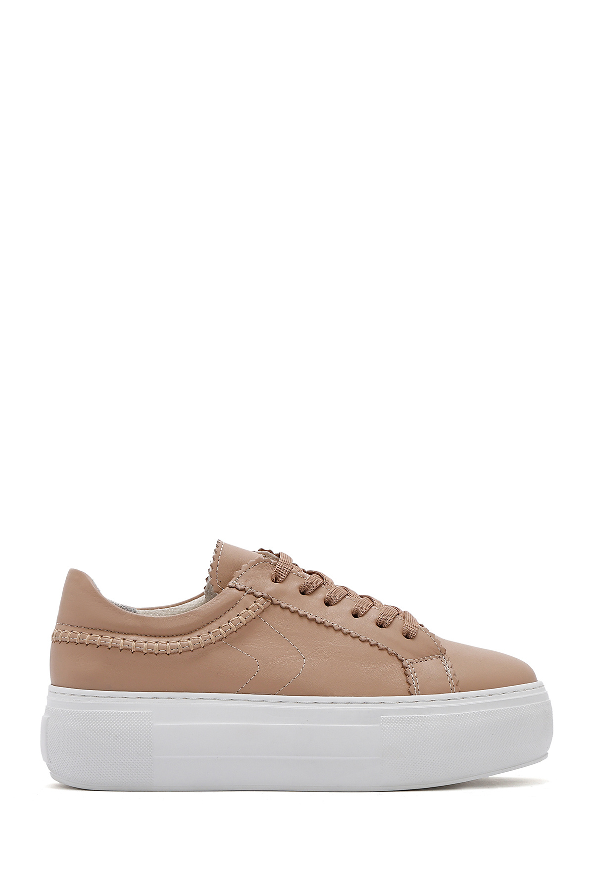 Kadın Bej Bağcıklı Kalın Tabanlı Deri Sneaker, Kışlık Spor Ayakkabı 25AFD221014 Kadın Bej Bağcıklı Kalın Tabanlı Deri Sneaker, Kışlık Spor Ayakkabı 25AFD221014 40
