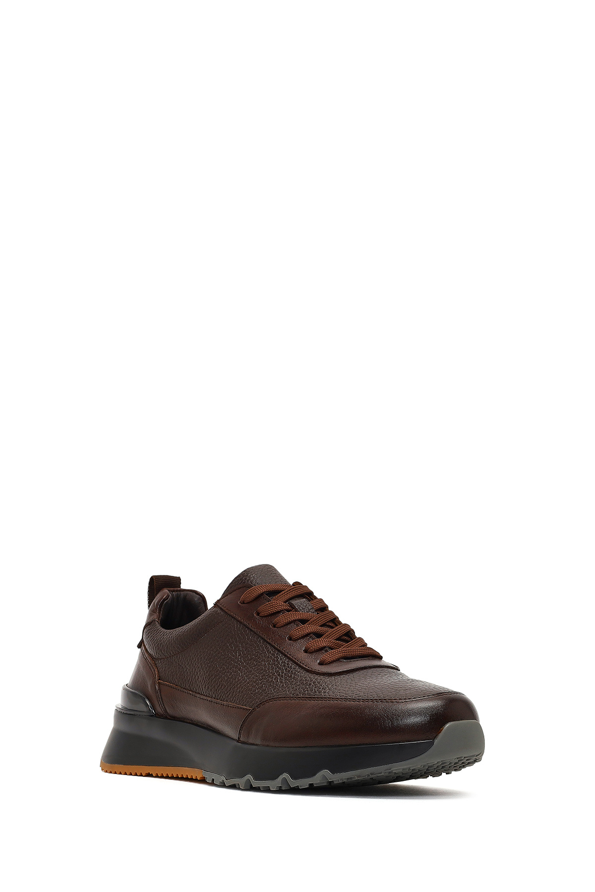 Erkek Kahverengi Bağcıklı Kalın Tabanlı Deri Sneaker,Kışlık Spor Ayakkabı 25WFD611714 Erkek Kahverengi Bağcıklı Kalın Tabanlı Deri Sneaker,Kışlık Spor Ayakkabı 25WFD611714 45